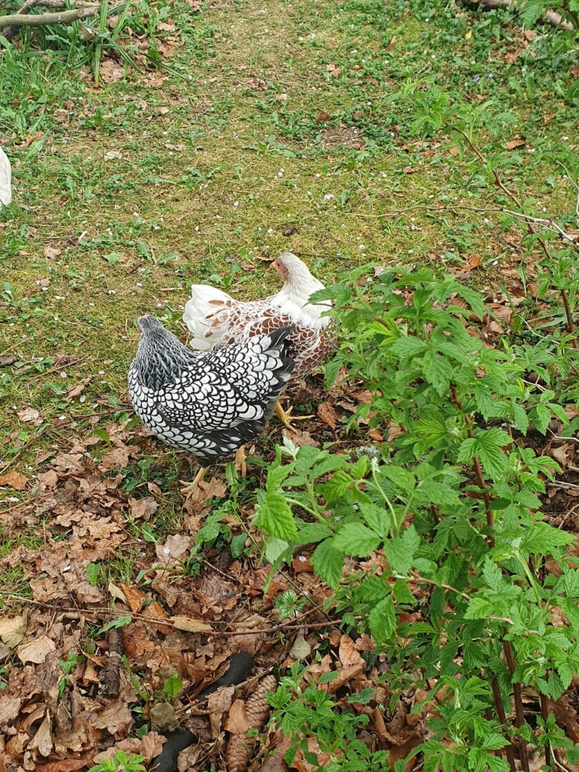 Ganz neu in der Ertragszone sind unsere fünf Hühner – Zwerg-Wyandotten, die vor drei Wochen bei uns eingezogen sind. Sie heißen Erna, Ilvi, Ashanti, Elsa und Lotta. Sie haben sich inzwischen gut eingelebt legen aber noch keine Eier.