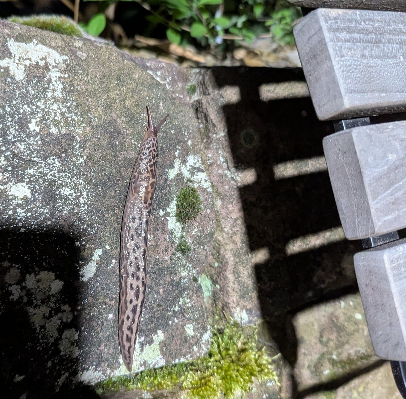 Begleitet hat mich übrigens ein richtig großer Tigerschnegel, er war locker 15 cm lang. So einen großen habe ich bei mir bisher noch nicht gesehen. Vielleicht ist das Max aus dem letzten Jahr (viewtopic.php?p=10214#p10214)? Zumindest hält er sich in den gleichen Bereichen auf und Max war letztes Jahr schon so 10 bis 12 cm groß.