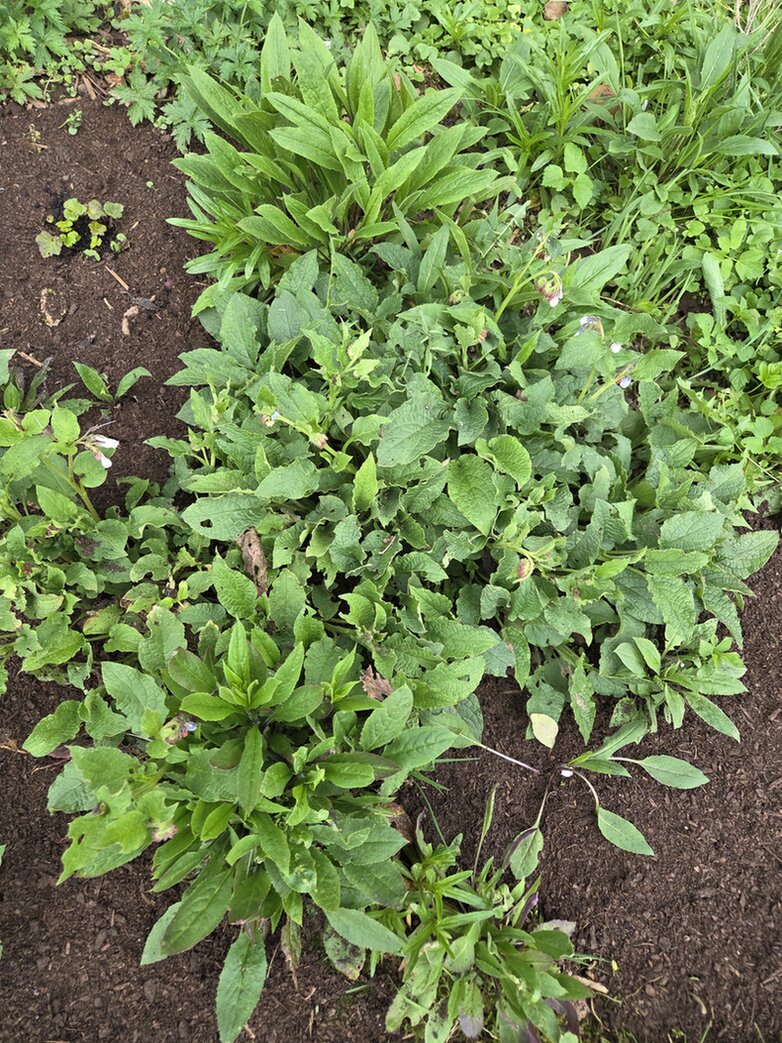 Hier ein Bild einer besonders problematischen Stelle, der Beinwell ist in der Mitte:
