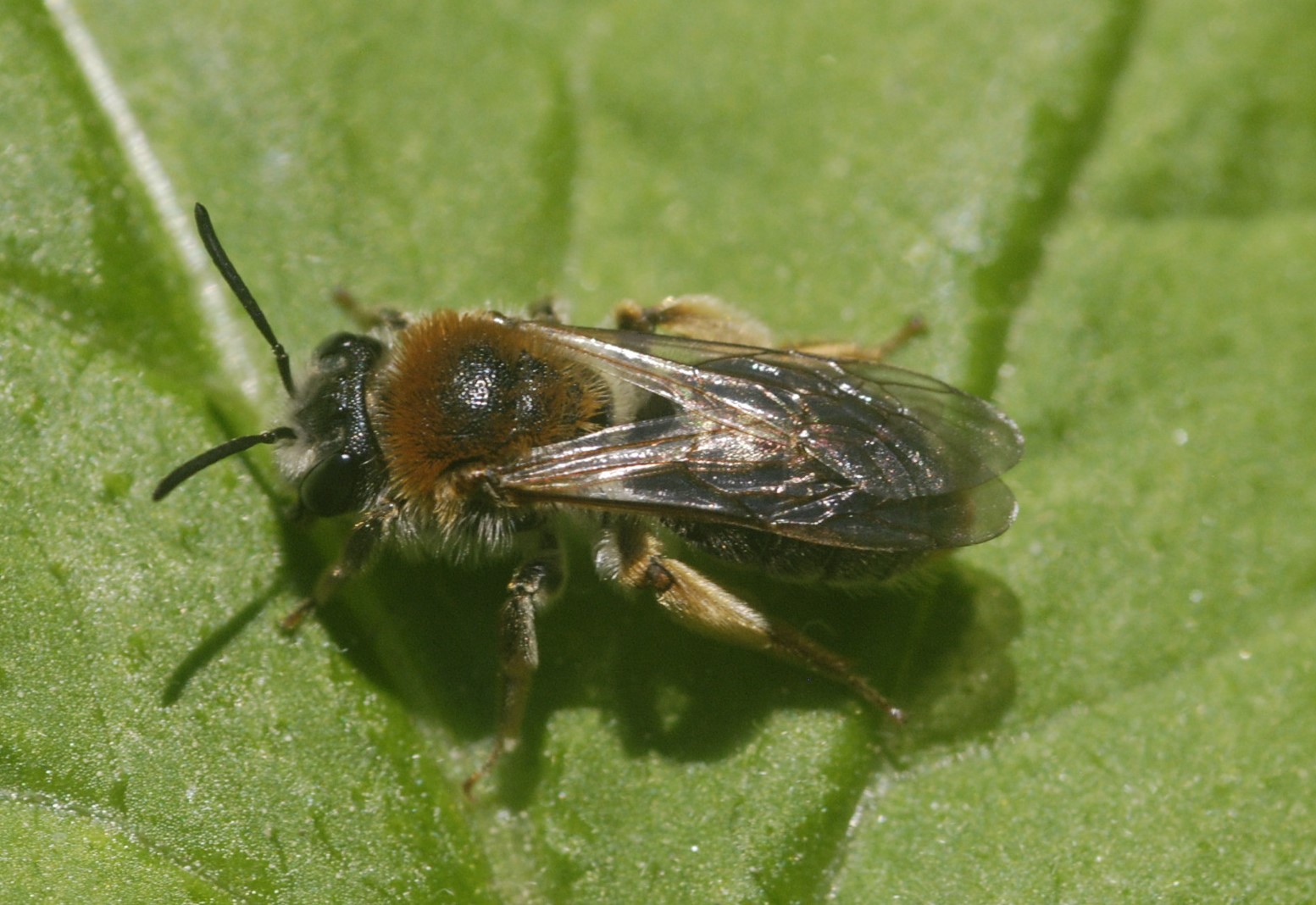 Im Garten habe ich eine kleine Brutkolonie der Rotschopfigen Sandbiene (Andrena haemorrhoa) entdeckt. Es sind so um die 30 Bienen die fleißig um ihre Brutröhren fliegen.