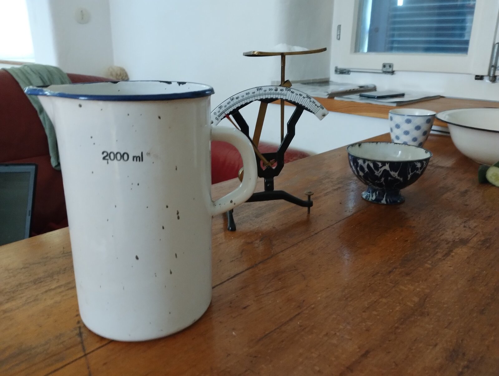 Ich stelle meine Fermente im Regal auf ein Stück Wachstuch (Rest von einer selbstgenähten Wickeltasche).
