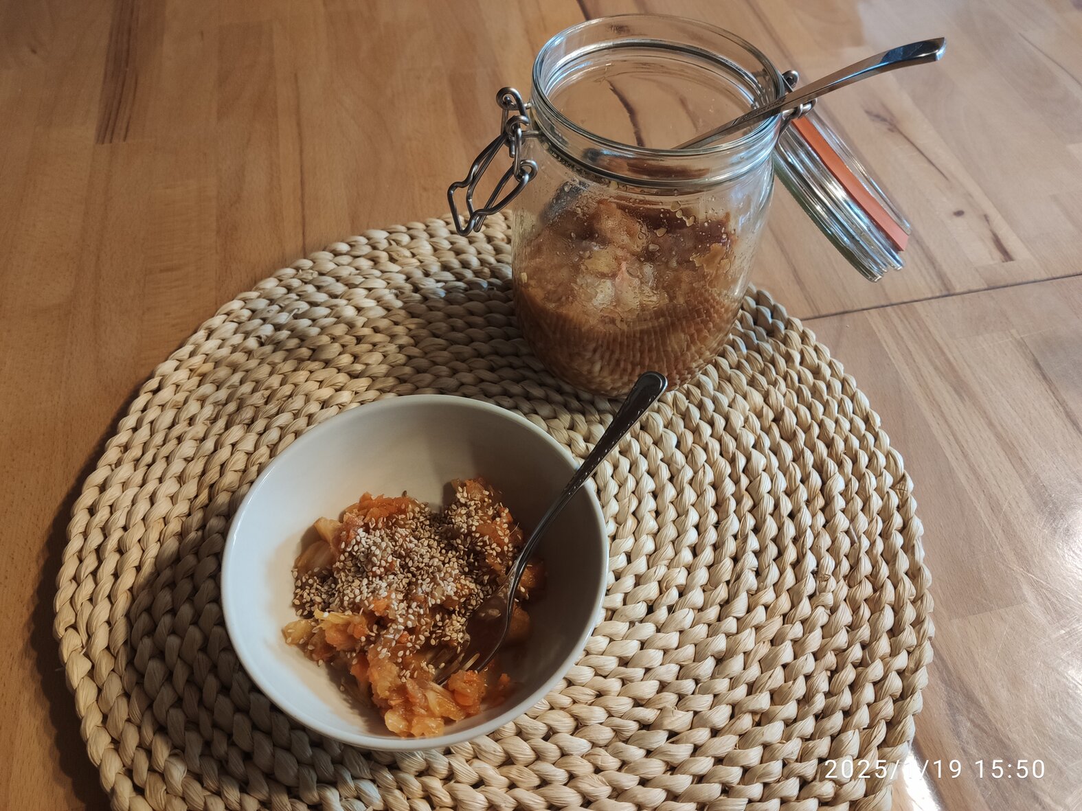 Heute habe ich mein erstes Glas Kimchi probiert. Ich hatte drei Gläser zum Fermentieren vor einigen Wochen angesetzt.