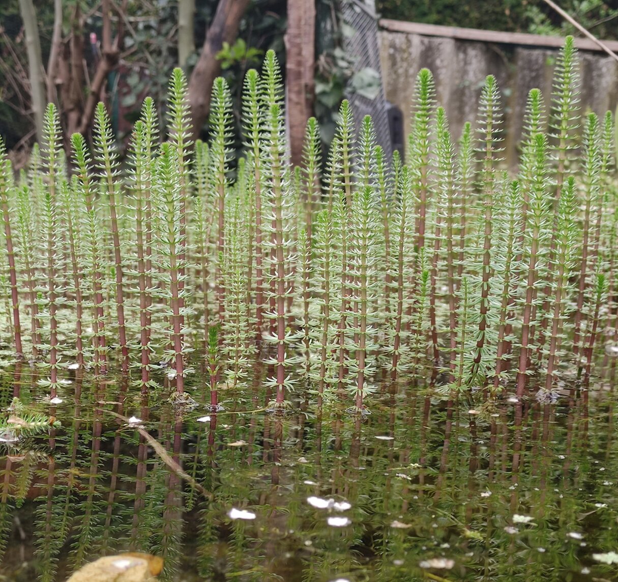 Die ominösen Pflanzen im Moorkübel und am Tümpelrand sind aus der Winterruhe erwacht und wachsen schon kräftig.