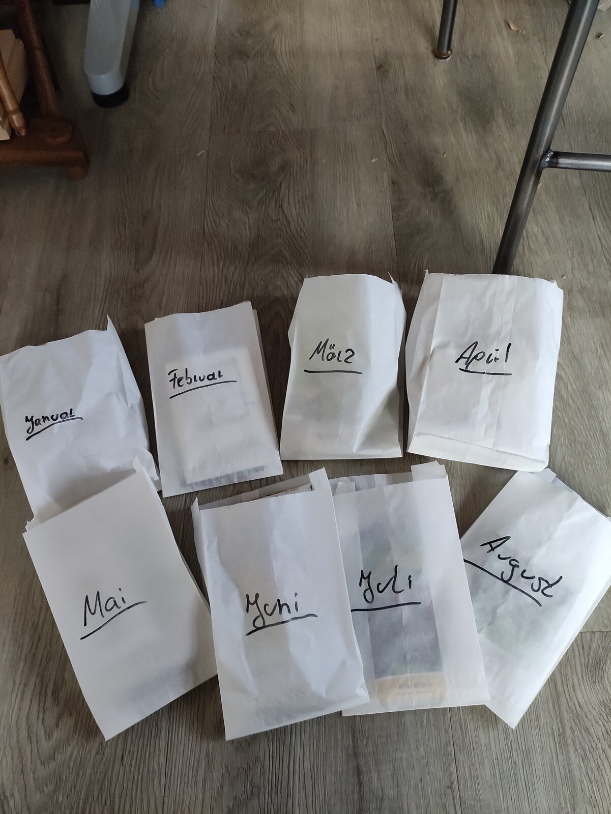 Da der Garten unter Schnee liegt, habe ich meine Gemüsesamen schon mal grob nach Aussaatterminen sortiert.