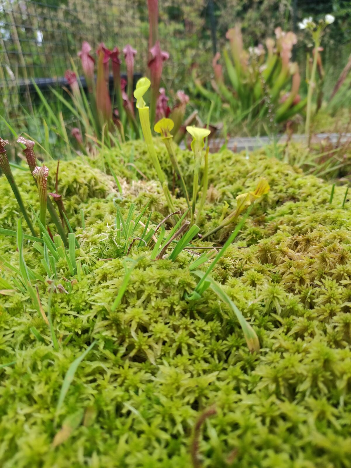 Dank des feucht kalten Wetters wächst das Torfmoos in den Moorschalen wie verrückt. Da wundert es einen das Moore so langsam wachsen.