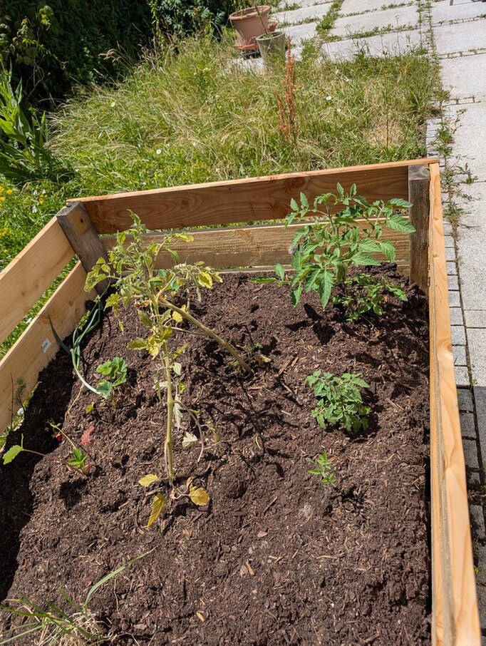 Ich habe jetzt auch eine Ertragszone, in Form eines halbgefüllten Hochbeets - mehr Gartenerde ohne Torf wäre mir echt zu teuer geworden.