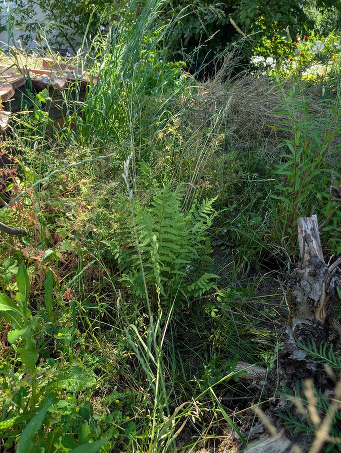 Der hintere Garten macht sich langsam, der sieht nur auf der Panoramaaufnahme so fettwiesen-grün aus, auf normalen Aufnahmen ist er bunter. Ich habe jetzt alle vier Wochenenden einen etwa einen Meter breiten Streifen rausgesenst, für den August hadere ich noch mit mir, ob ich den Goldrutenhorst mit abschneide (der wäre jetzt dran), oder ob ich die paar Ackerglockenblümchen vorschütze und gar nicht mähe, bis die Glockenblumen verblüht sind.