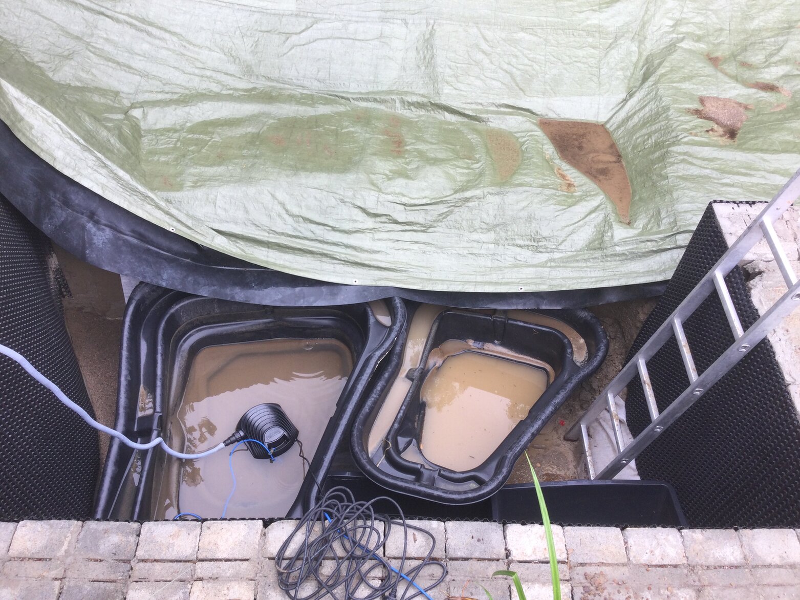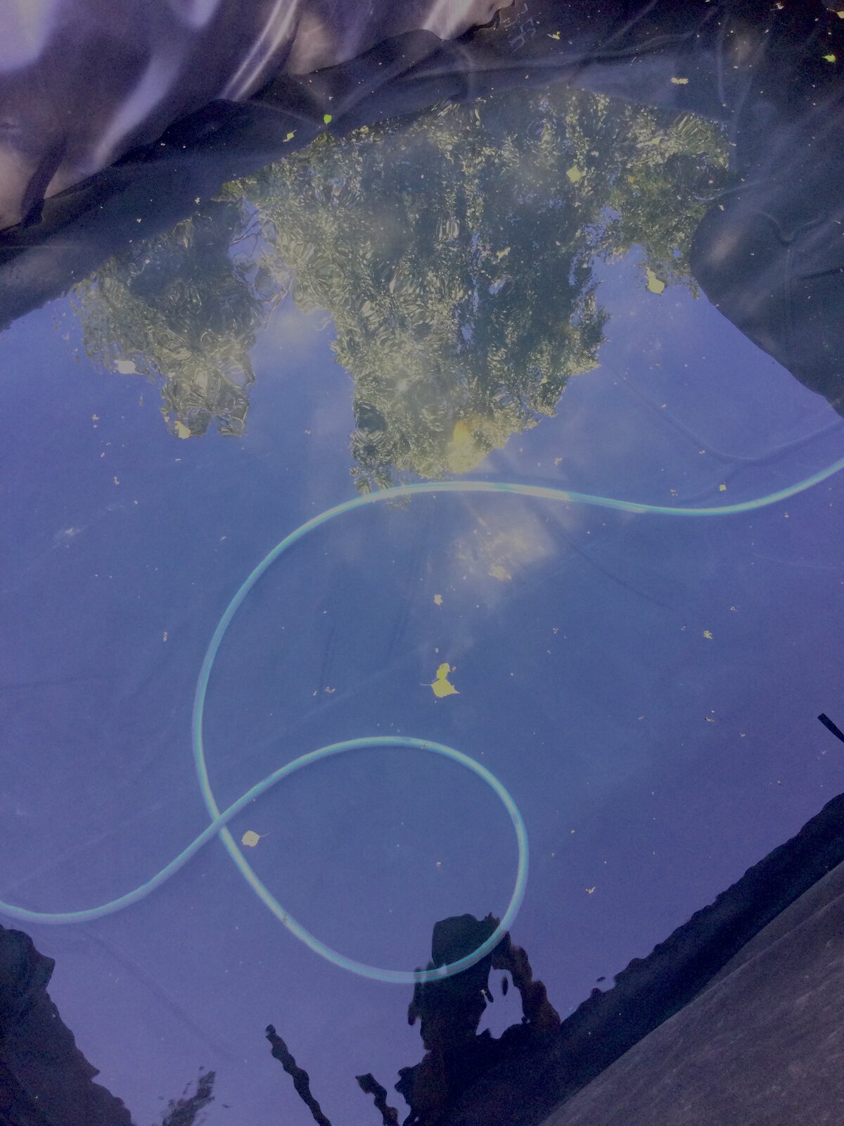 Danach hiess es "Wasser marsch!" Das ist allerdings die Kontrolfüllung um zu schauen ob irgendwo Spannungen entstehen. Ich habe gesehen, dass ich an einer Stelle etwas justieren muss. Ist aber kein Problem. Ich bin aber sehr beruhigt richtig gemessen zu haben und dass die Folie gross genug ist.