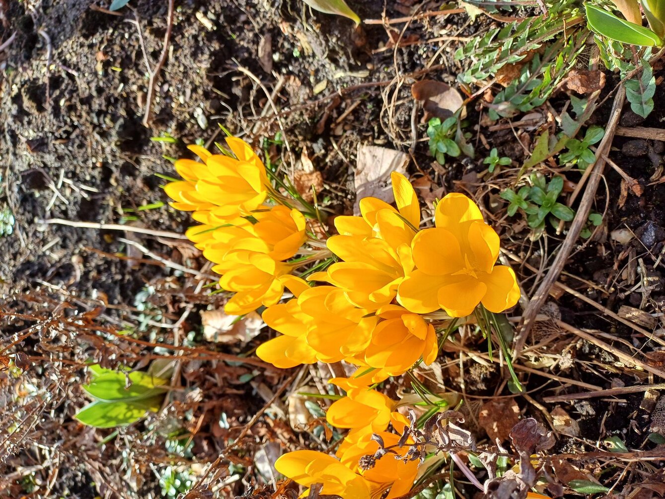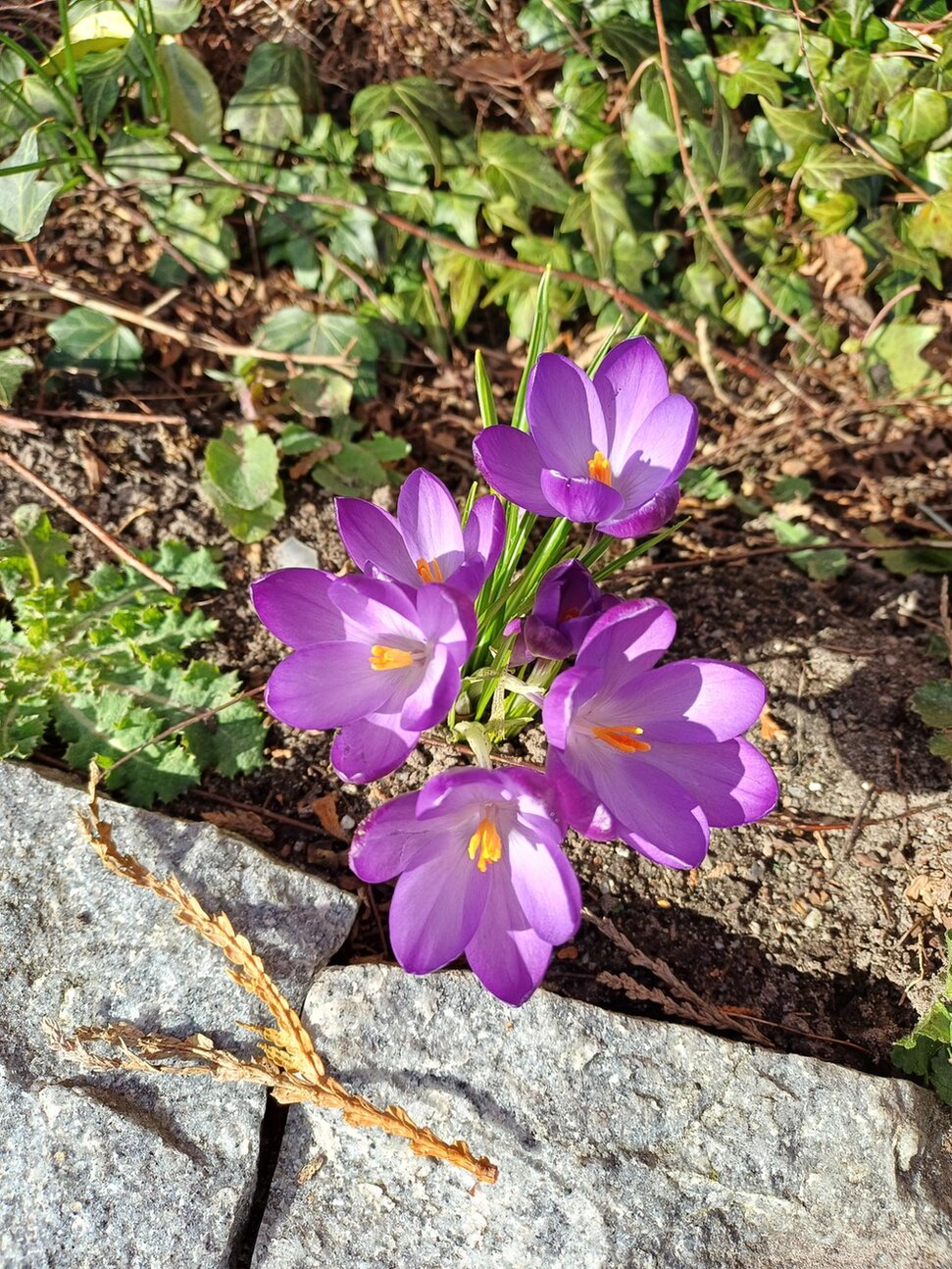 Hier ein Bild der zu berankenden Hecke und ein paar Frühlingsboten :D