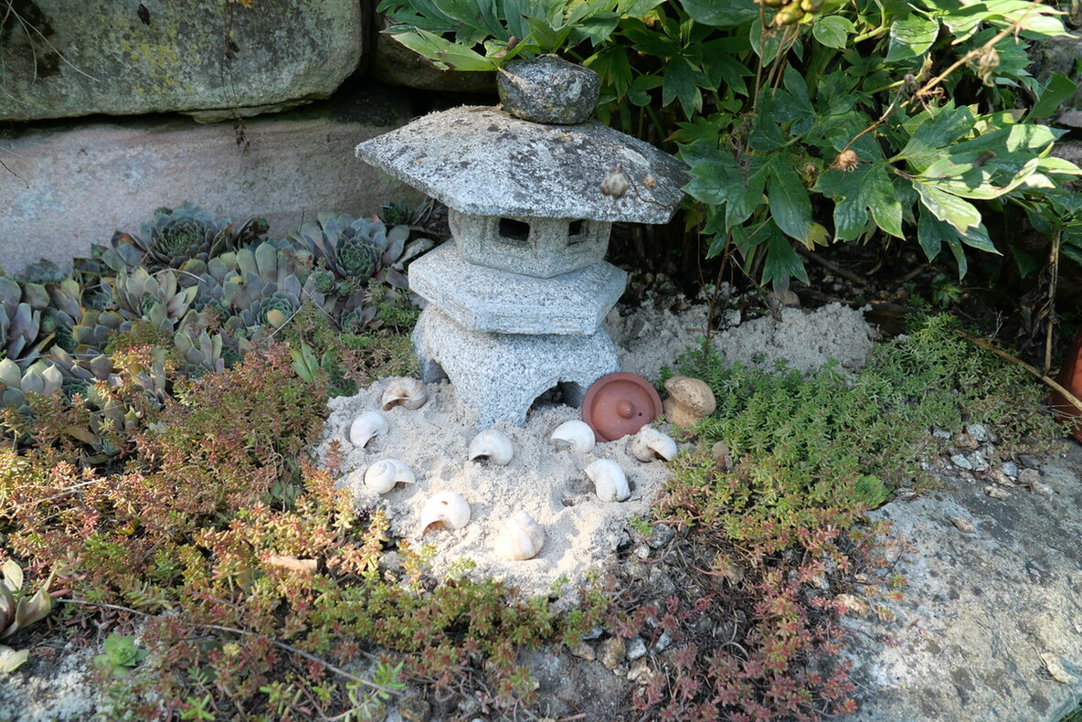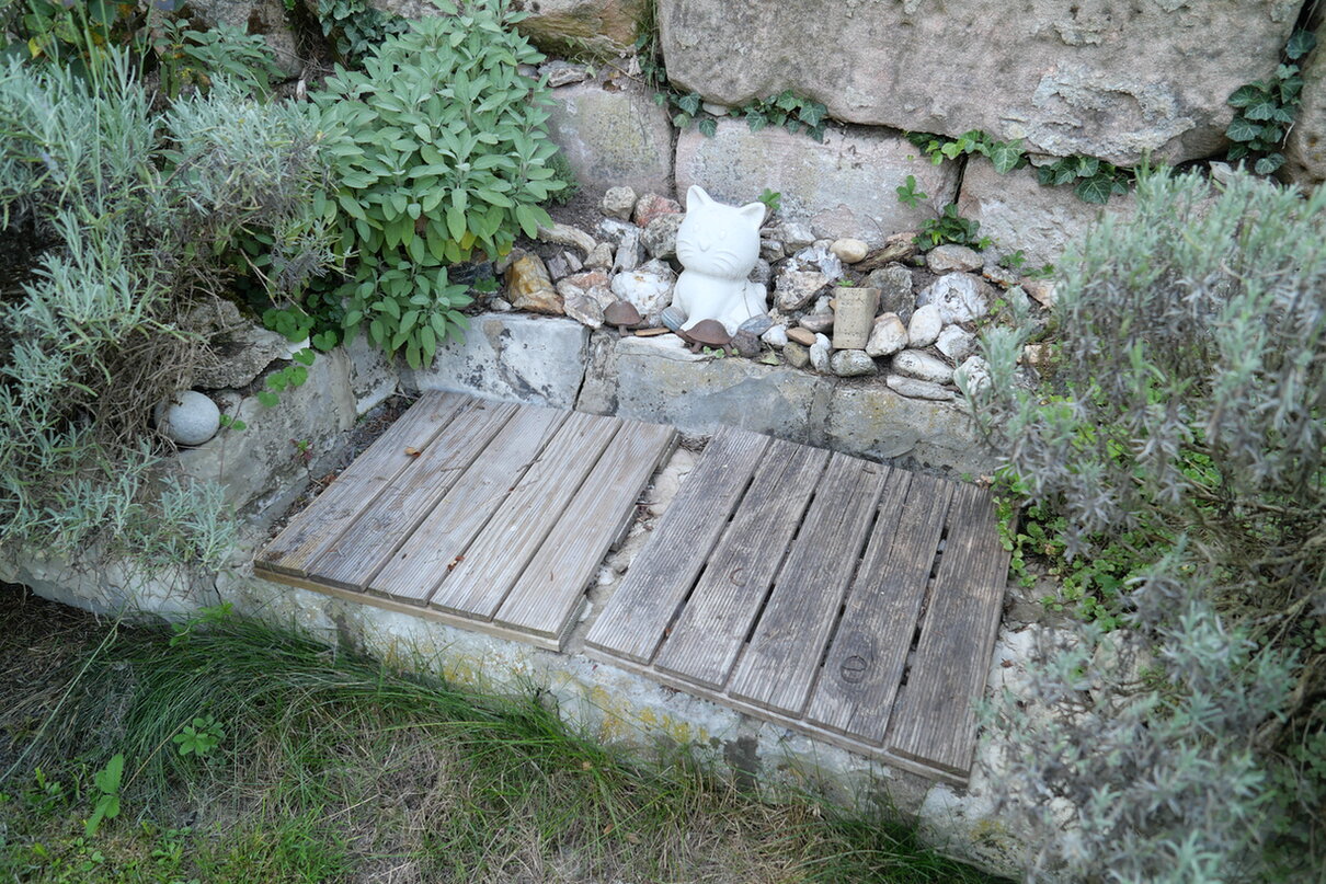 Gestern fiel mir auf, dass ich doch noch natürliches Totholz und Steine im Garten habe.