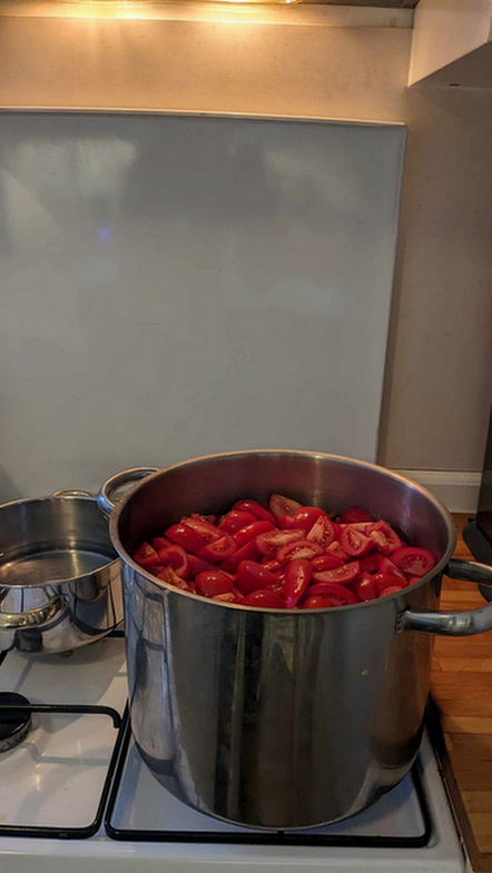 Aktuell haben wir so viele Tomaten, dass wir sie gar nicht alle als Salat und Snack essen können. Also werden wir Tomatensoße einkochen.