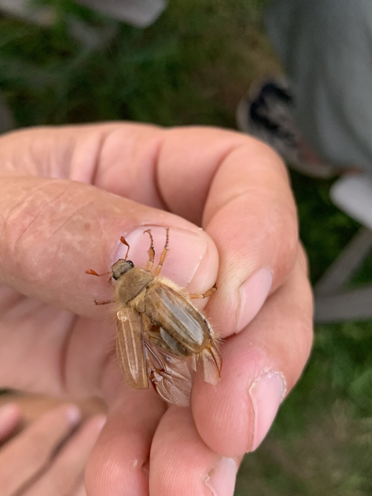 Junikäfer hatten wir vor zwei Jahren in großer Menge. Ich fand sie so lustig. Wenn man mit gut 1,6m auf einer Rasenfläche bzw. -weg der höchste Punkt ist, werden sie treue Begleiter.