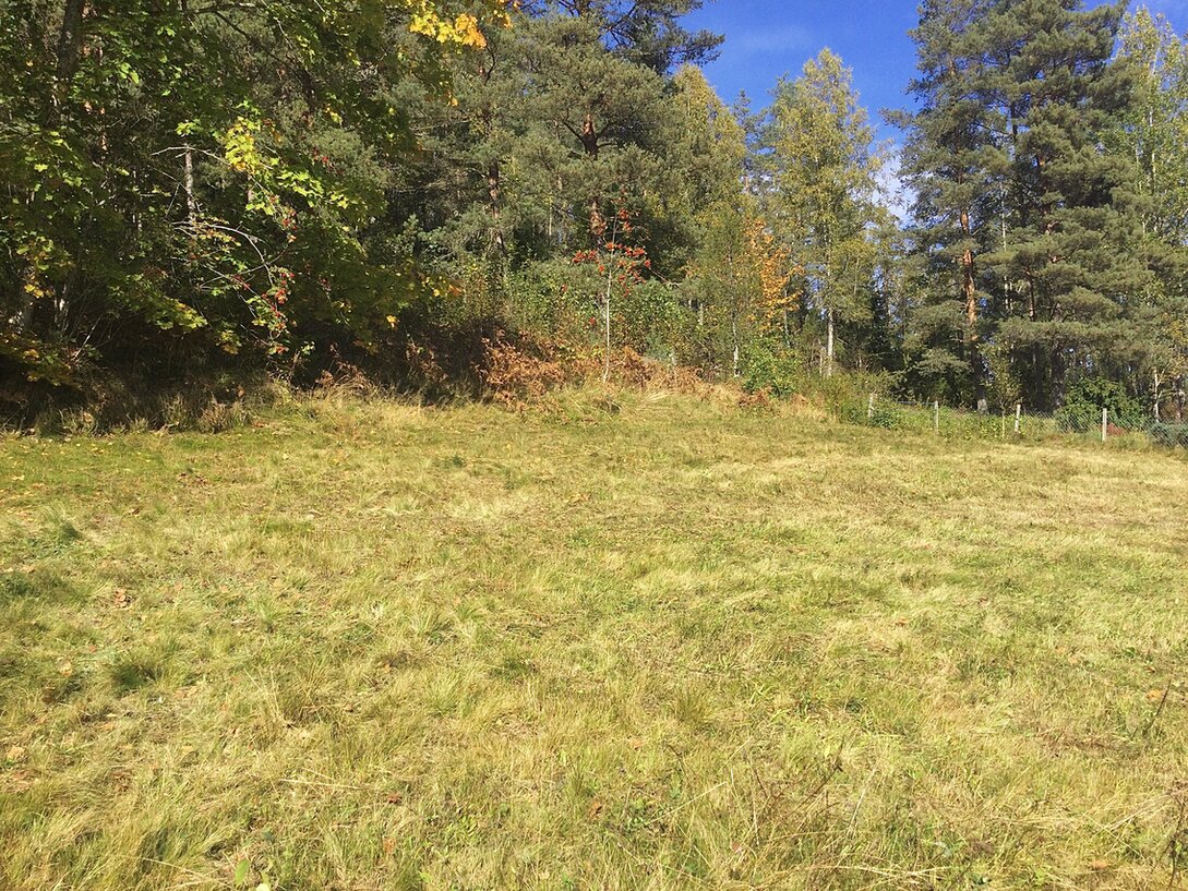 Das Gründstück endet in der Linie der Steine und Birke.