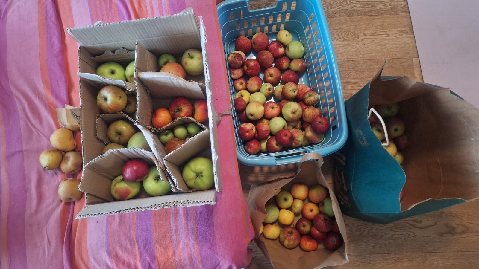 Diesmal haben wir Proben genommen, 3-4 typische von jedem Baum, und weil wir schon mal da waren, habe ich direkt noch einen Waschkorb und ne Tüte dazubekommen.