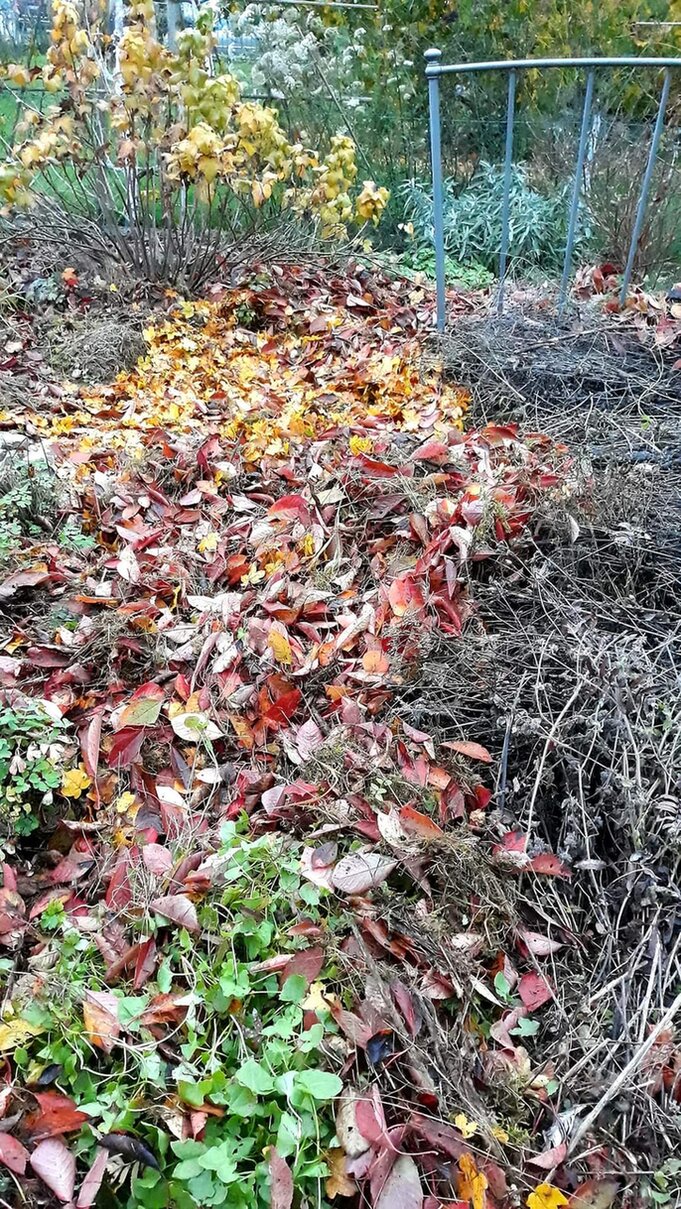 Die Beete und Wege versinken ab Herbst teilweise knietief in Laub und Grünschnitt, welche ich von benachbarten Flächen einsammle.