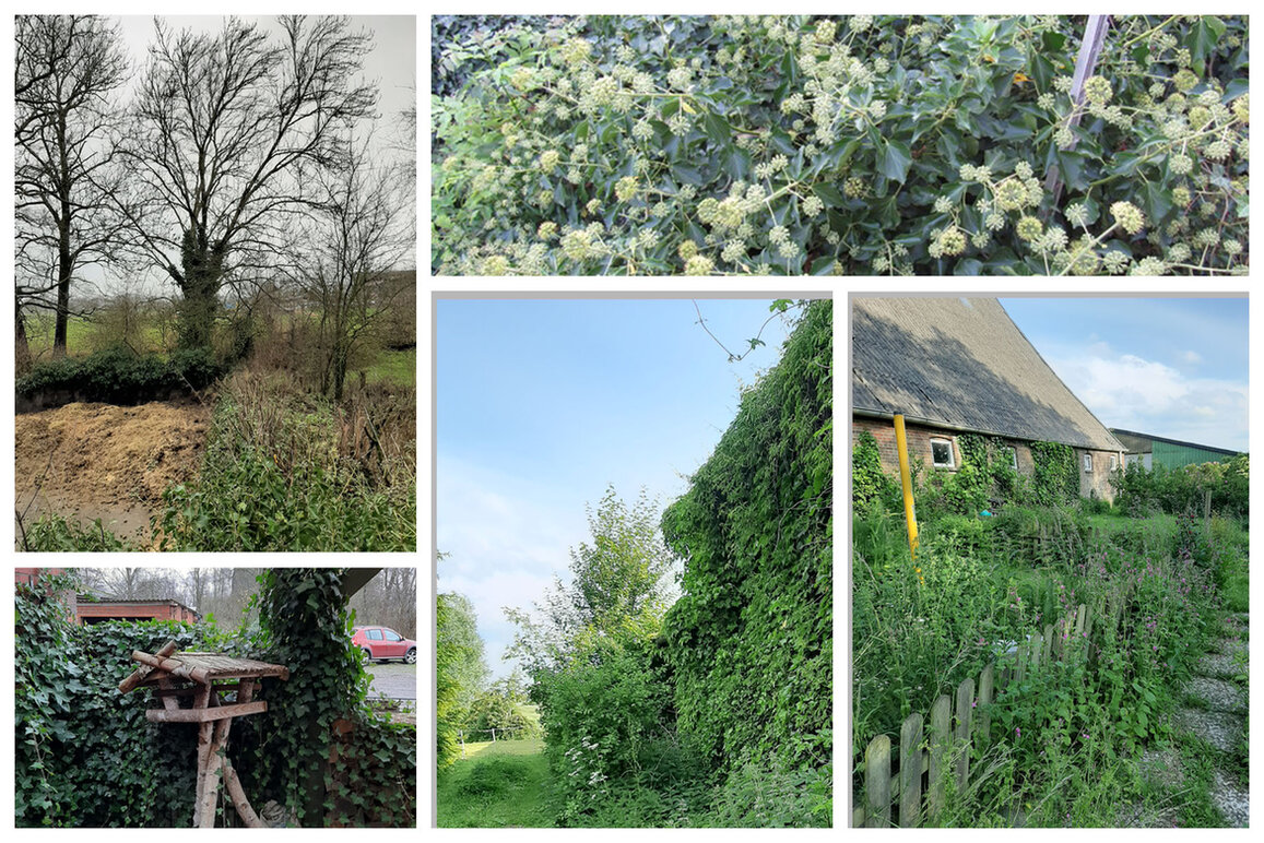 Außerdem stellen einen riesigen Hotspot unsere Efeuwände dar, die eine Seite des Stallgebäudes und die uralte (ca 2-300 Jahre) Westwand des Haupthauses überwuchern.