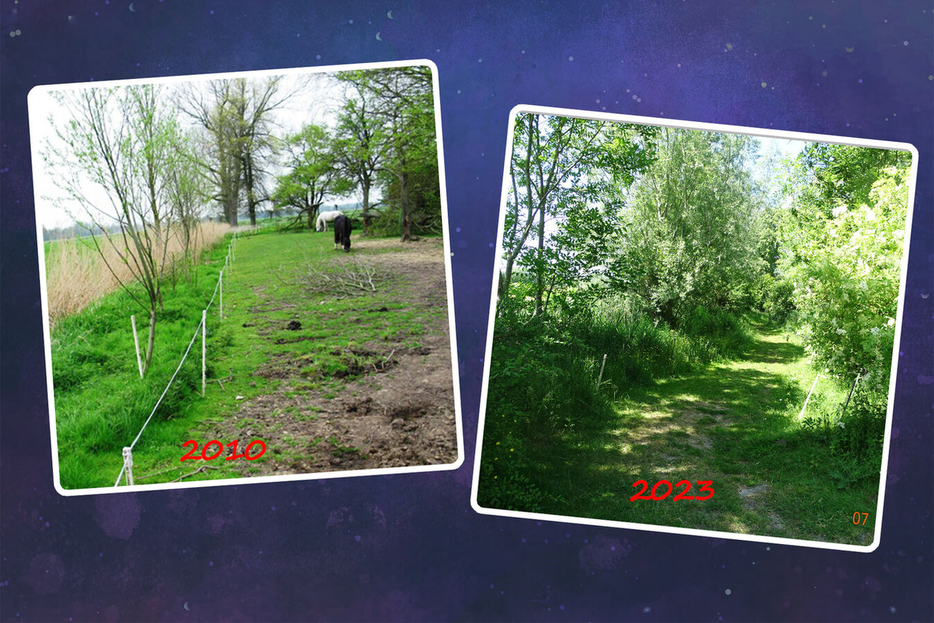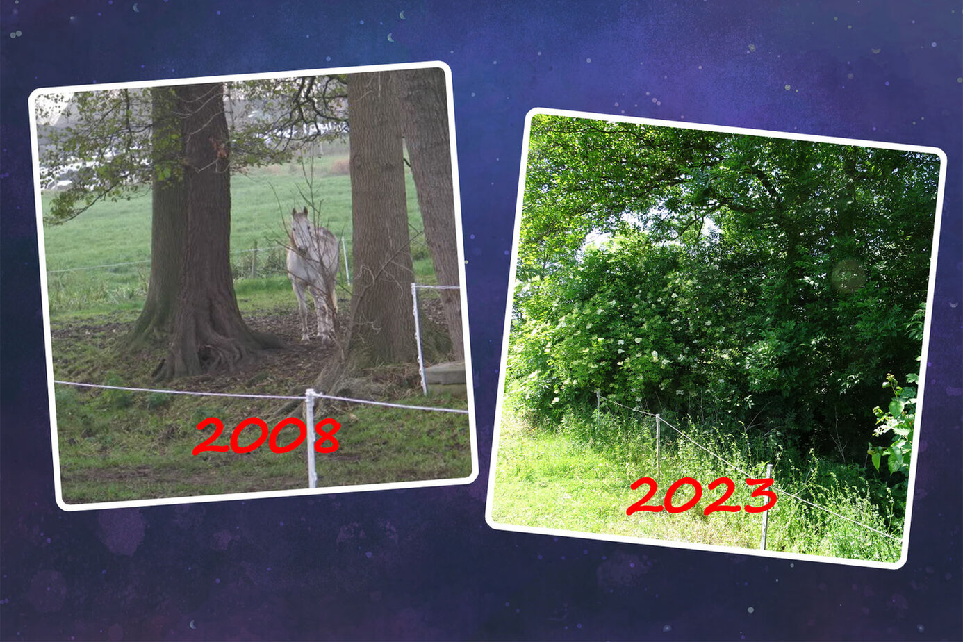 2008 habe ich mir einen 5 ha großen, 400 Jahre alten Resthof mit dem Ziel gekauft, meine Pferde vor der Haustür zu halten und gleichzeitig ein Naturparadies zu schaffen.