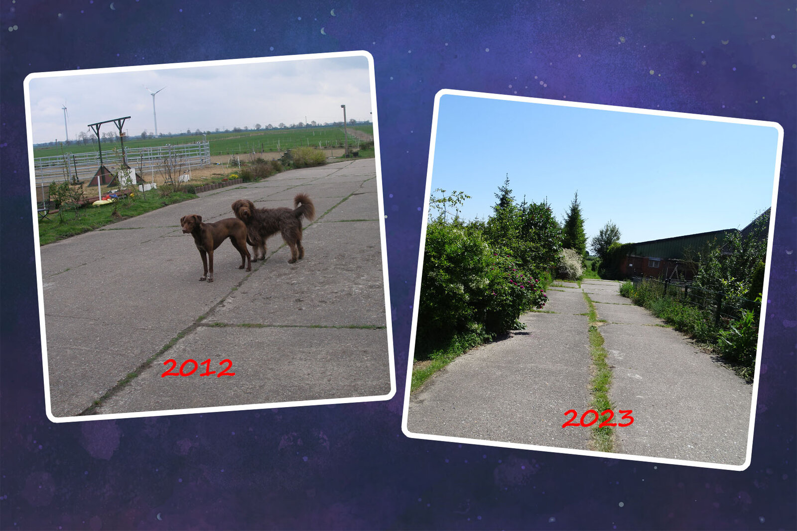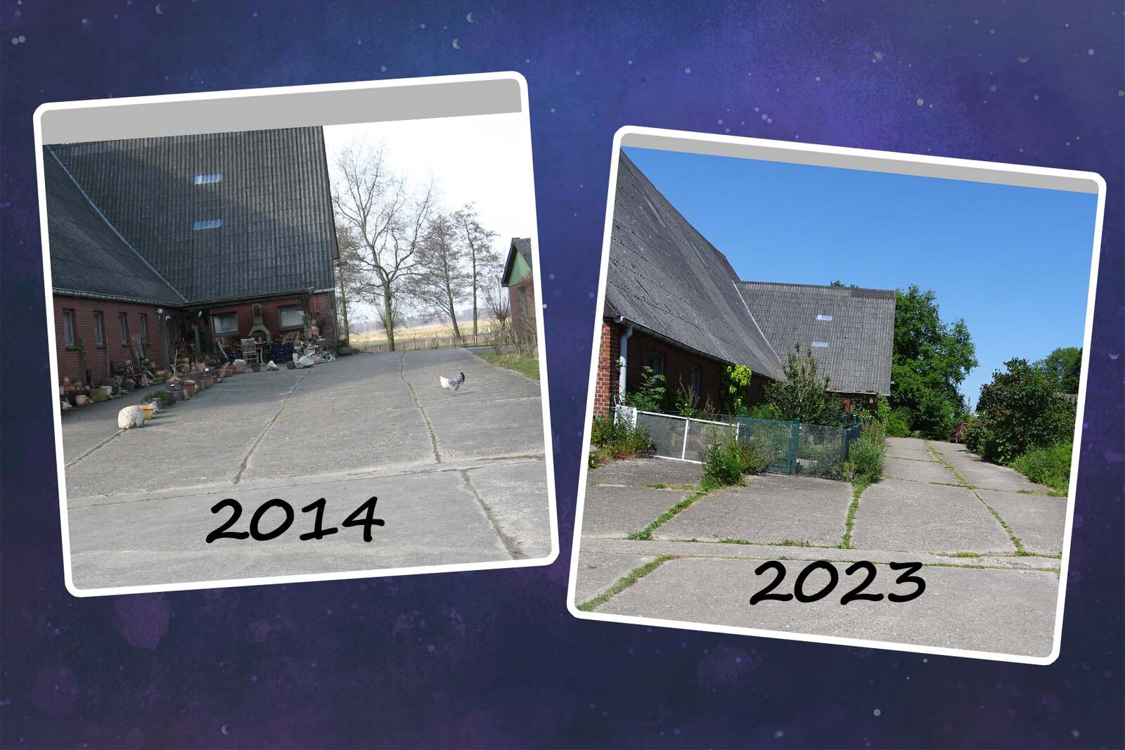 Als ich vorgestern die Fotos vom Hof gemacht und gepostet habe, war ich selbst erschrocken, wie kahl der Hof damals aussah – so krass hatte ich es gar nicht mehr in Erinnerung.