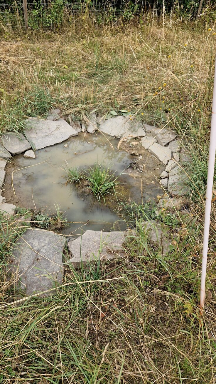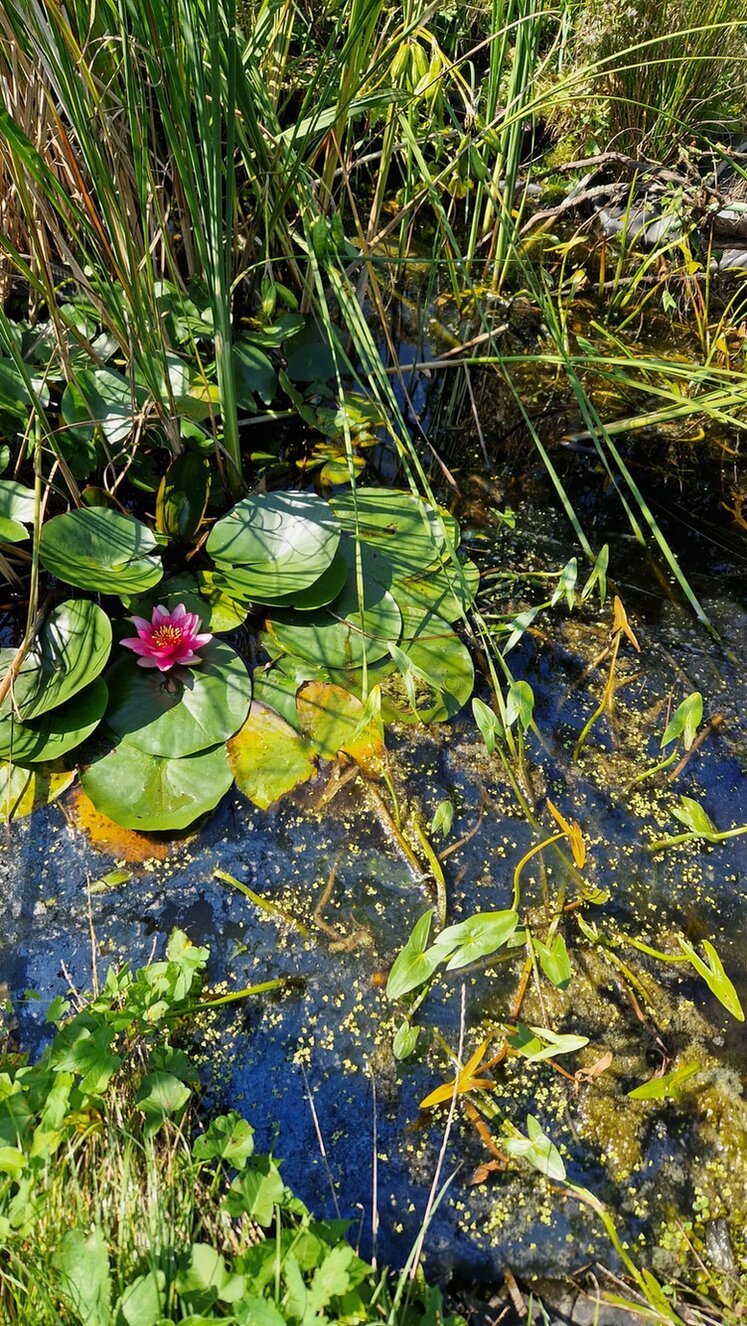 Der Hotspot ist eine Wiese von ca. 800 m². Es ist eine Fettwiese, die z. Zt. 2mal gemäht wird. Es gibt ein Sandarium, einen Steinhaufen für Amphibien und Reptilien, insgesamt 3 kleine Teiche, eine Lehmkuhle für Schwalben, Reisighaufen und Totholz. Zusätzlich zur Wiese gibt es auch ein Magerbeet, auf dem sich sehr viel Blühendes tummelt. Teils seltene, ausschließlich einheimische Pflanzen blühen bis der Frost sie zur Aufgabe zwingt.