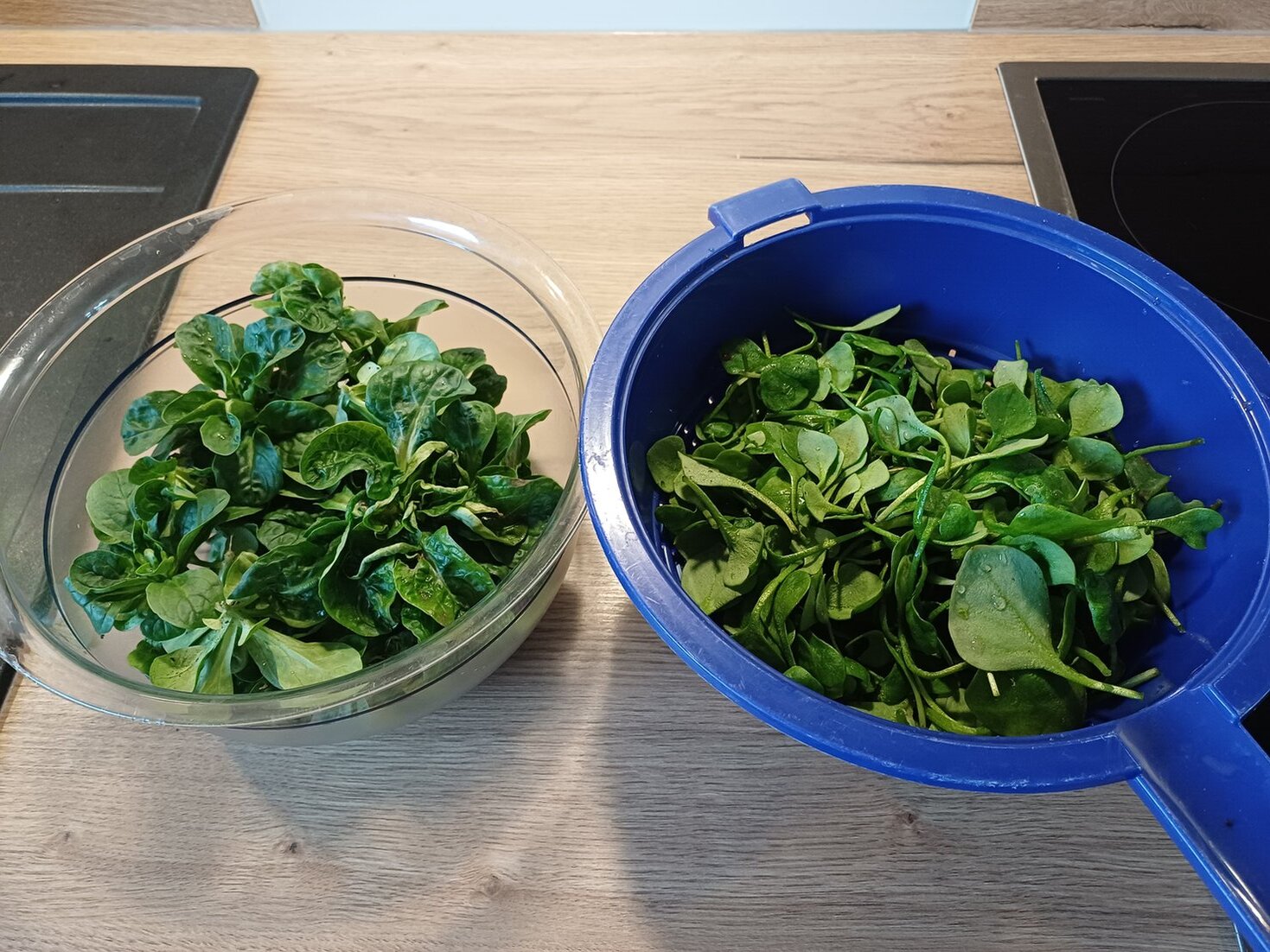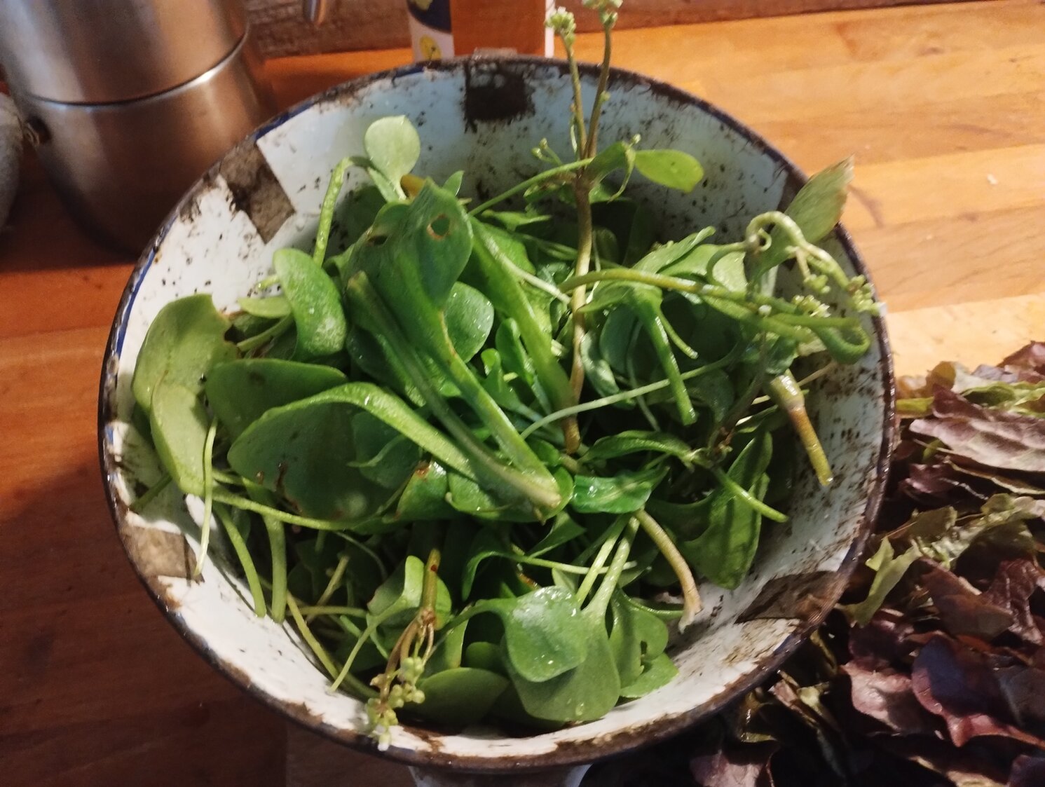 Der Frost ist zurück gegangen. Dadurch konnte wir endlich nochmal Feldsalat und Winterpostelein ernten.