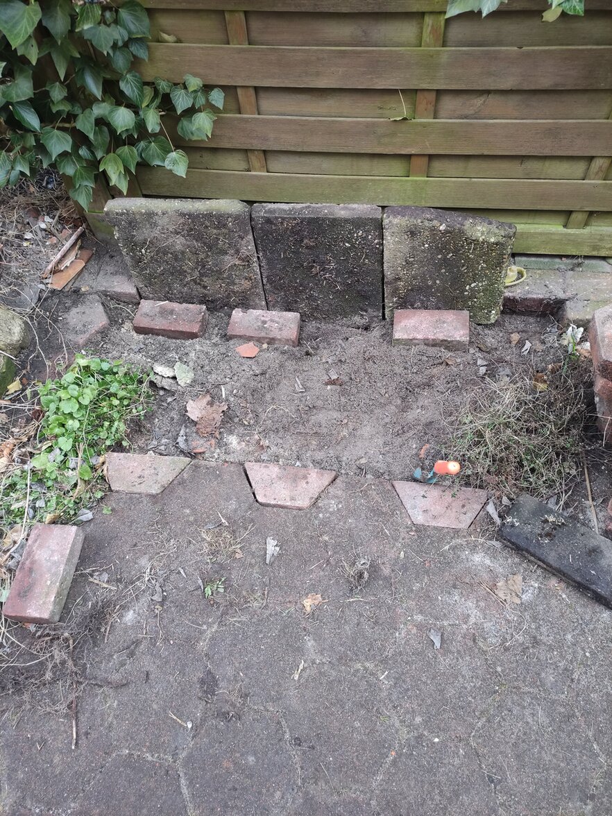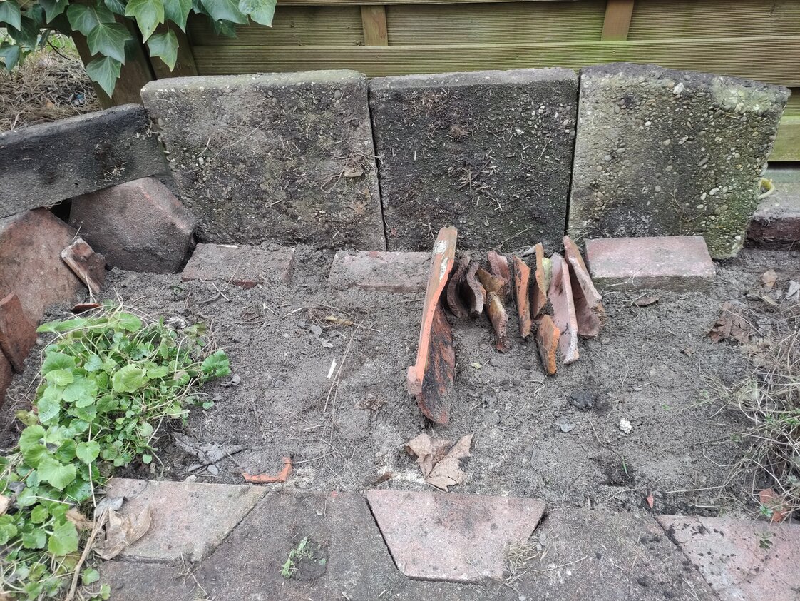 Als erstes wurde die Pflasterung an der geplanten Stelle entfernt und eine Rückwand aufgestellt, damit eine leichte Schräge entsteht.