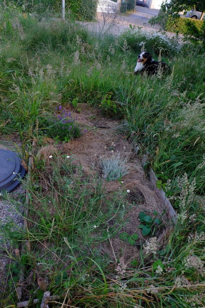 Steinhaufen als Naturmodule, ein Igelhaus wird bald gebaut.