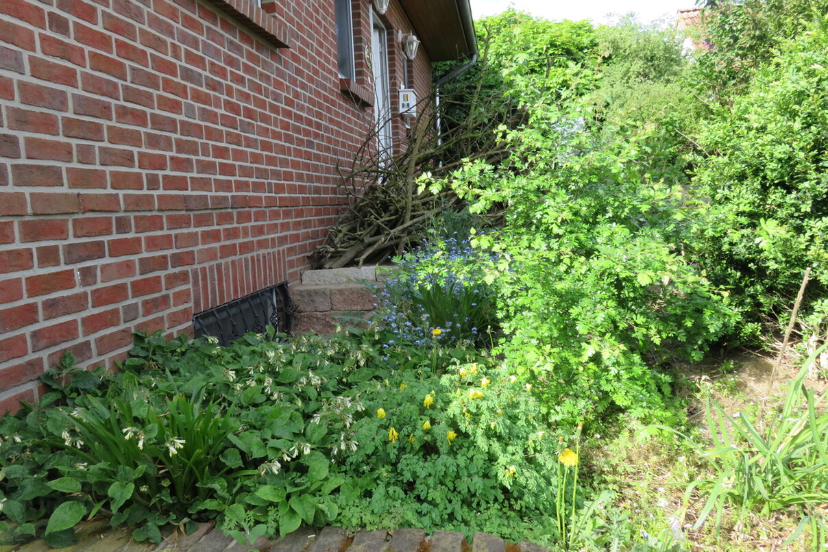 Mein Garten liegt ländlich, direkt am Feldrand. Er enthält einen Teich, heimische Sträucher und Totholzhecken als Pufferzone, zwei Magerbeete, wilde Wiesen mit verschiedenen Saaten von Rieger-Hoffmann als Hotspotzone, Käferkeller, drei Pyramiden aus Natursteinen und Tonziegeln, Kräuter und Obstbäume als Ertragszone.