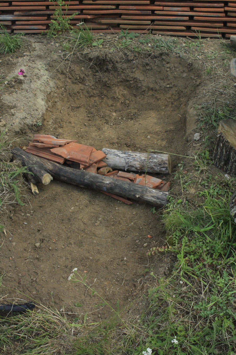 Nachdem ich bei der Wiesenmahd im Frühling eine Eidechse in einem Baumstumpf aufscheuchte, überlegte ich mir Möglichkeiten sie zum Verweilen einzuladen. Neben mehr Sonnen- und Wärmespeichermöglichkeiten in der Wiese legte ich einen Eiablageplatz an. So eine Sandkuhle sollte sonnig gelegen und 20-30cm tief sein.