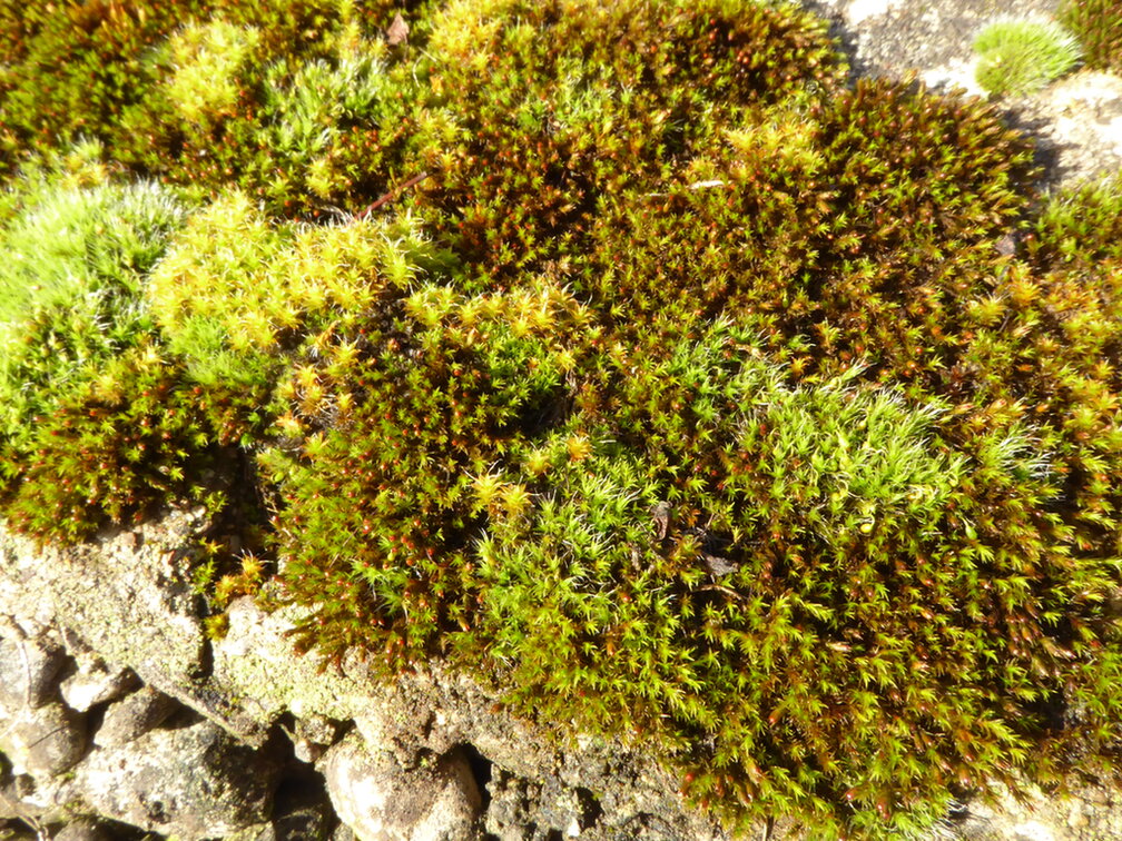 4. Aber vielleicht schlafen auch gar nicht alle: Auf der Mauer grünt wundervoll das Moos. DAS Moos? Schaut genau hin, es sind viele Arten, die alle mit- und durcheinander wachsen. Ein wunderschön gewirkter Teppich.