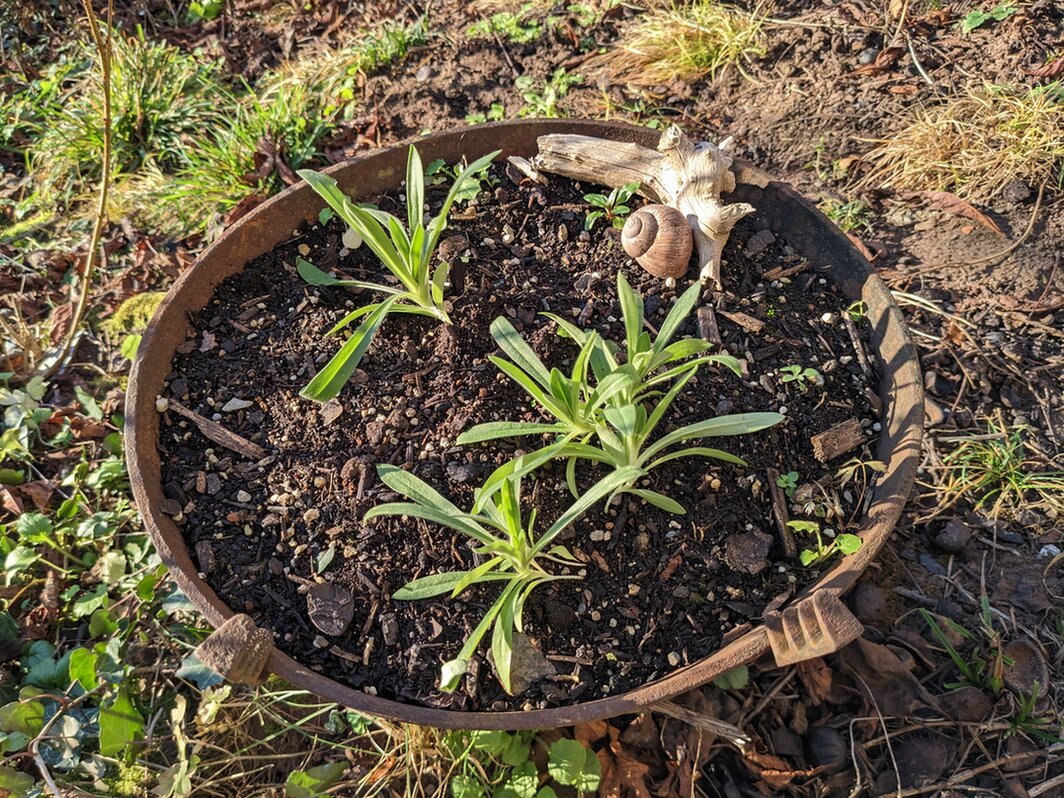 5. In einer Schale, naja, einem nicht mehr benutzten Grill, habe ich im Herbst Blutweiderich gesät. So dachte ich jedenfalls... Wer von euch erkennt Blutweiderichsämlinge und ahnt die Überraschung...