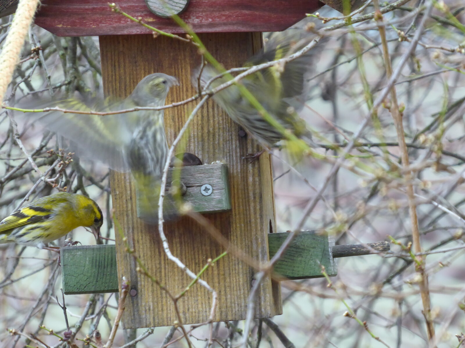 1. ... haben wir für ein paar Wochen Besuch von einer Schar Erlenzeisige. Sie sind ziemlich lustig und bringen Farbe und Leben auf den Balkon.