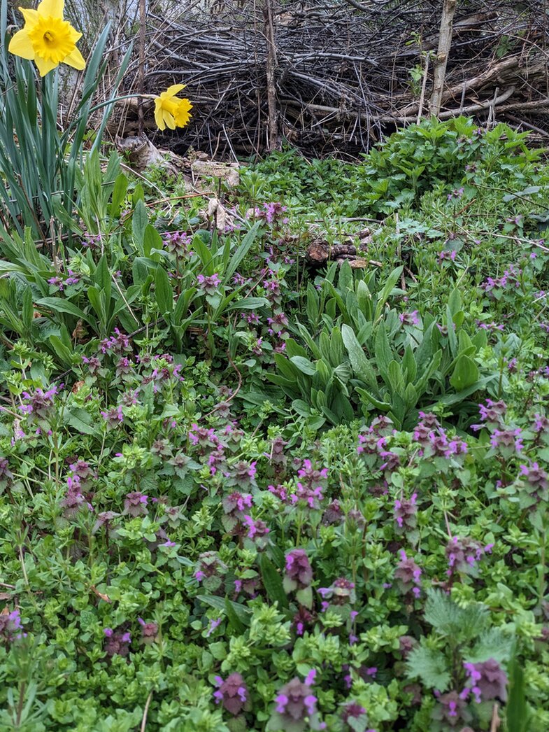 3. Alles wurde üppig in diesem Mai. In meiner "Waldzone" habe ich vor ein paar Jahren drei Pflänzchen der Gewöhnlichen Goldnessel gepflanzt, die sich ziemlich vermehrt haben. Es sollte ein Statement gegen die sich ausbreitende Silberblättrige Goldnessel sein - aber da bleibt eine gewisse Unsicherheit, ob ich hier nicht auch jemanden mit Weltherrschaftsambitionen eingeladen habe... ;-)