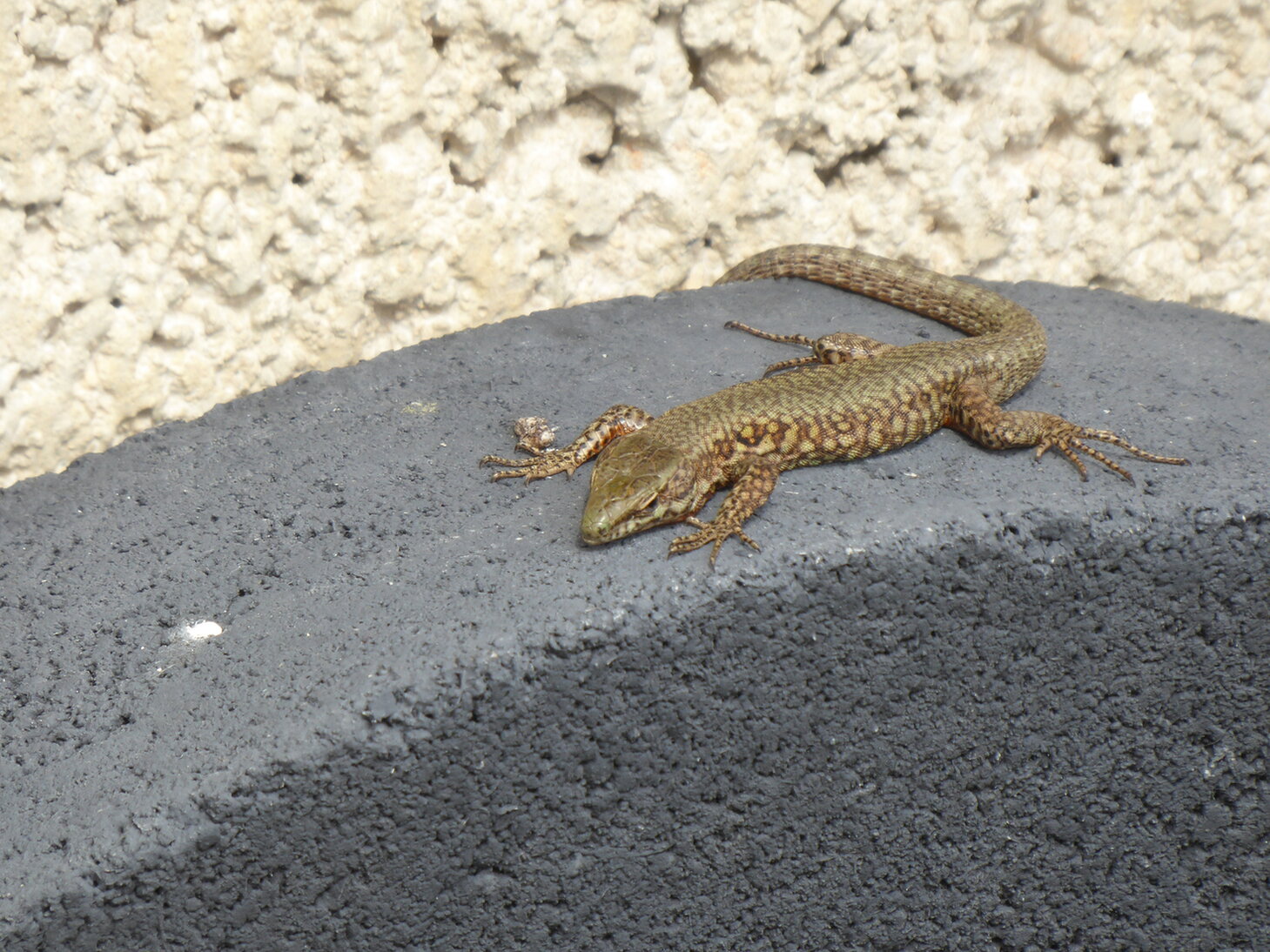 3. An warmen Tagen kommen sie jetzt wieder heraus, hier auf dem bevorzugten Sonnenbalkon an der Hauswand (eigentlich ein Fledermauskasten).