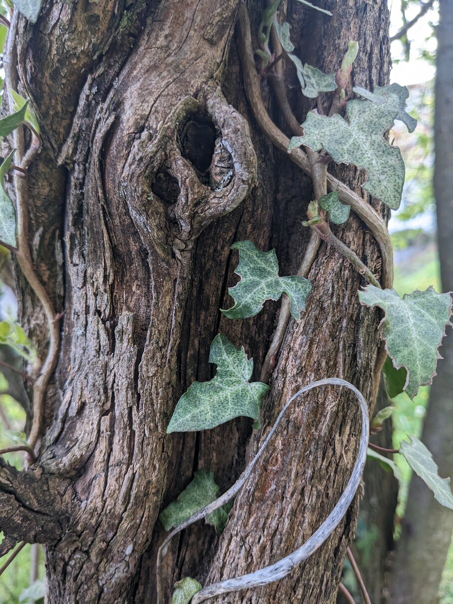 9. Ein alter Fliederstamm. Er darf hier in Ruhe sterben.