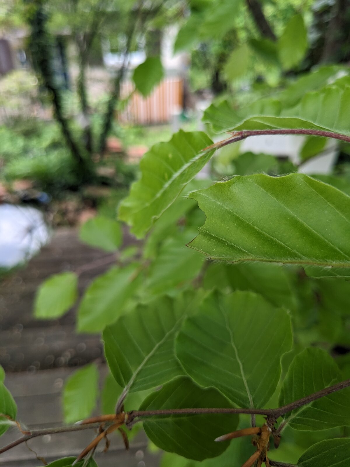 12. Natürlich freue ich mich über die Feuchtigkeit. Aber es gibt auch Schattenseiten, z. B. allerlei Blattpilze, z. B. an Rotbuchen, hier an unserer Wildkirsche.