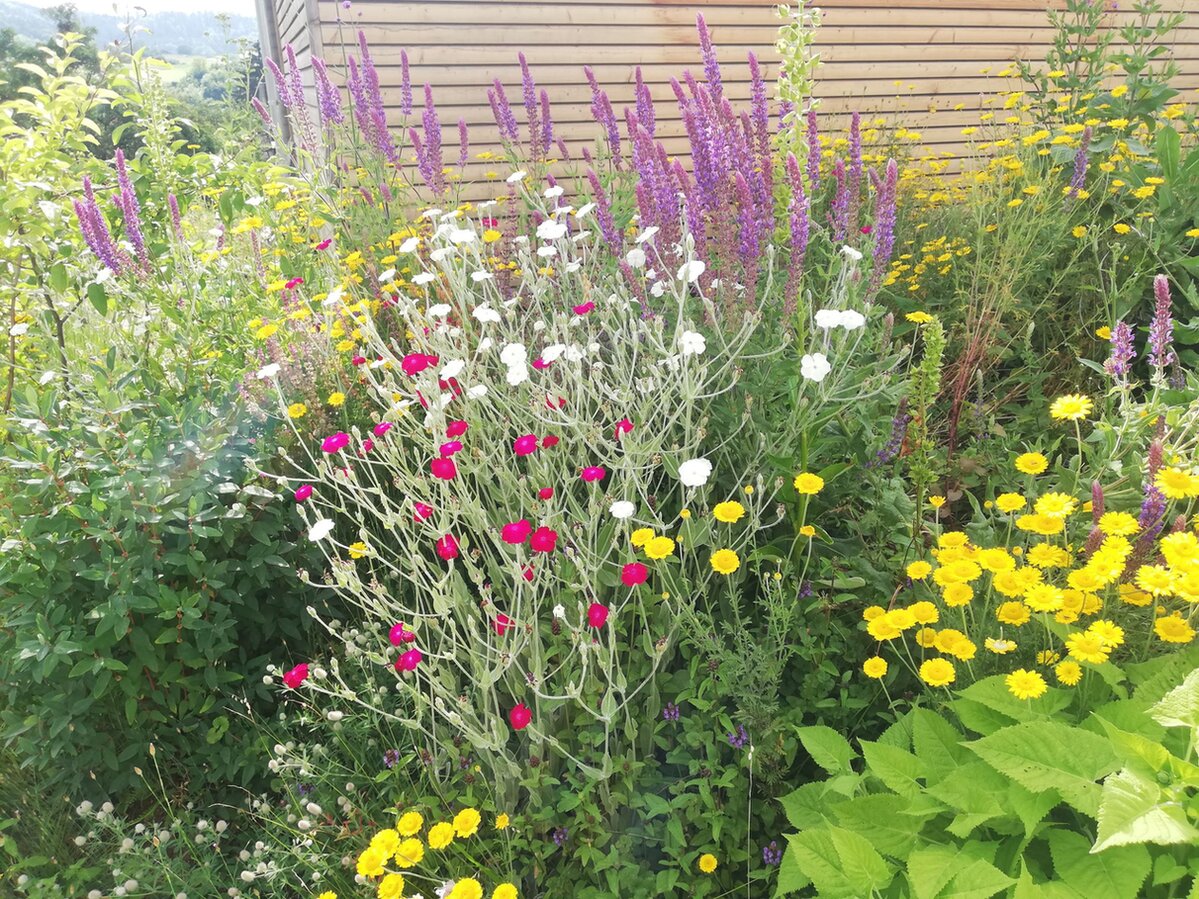 Mein kleines Holzhaus habe ich 2021 bezogen, den Wunschgarten konnte ich erst ein Jahr später anlegen. Er fällt auf in einer Nachbarschaft, wo Betonmauern, Schotter, Doppelstabmatten und Kirschlorbeer regieren.