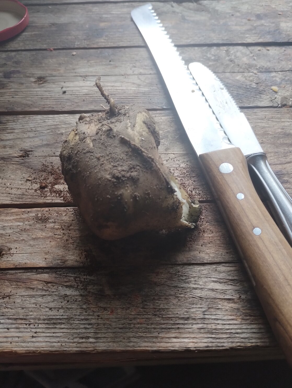 Vorsichtig habe ich gestern an einer Pflanze eine Wurzelknolle ausgegraben.