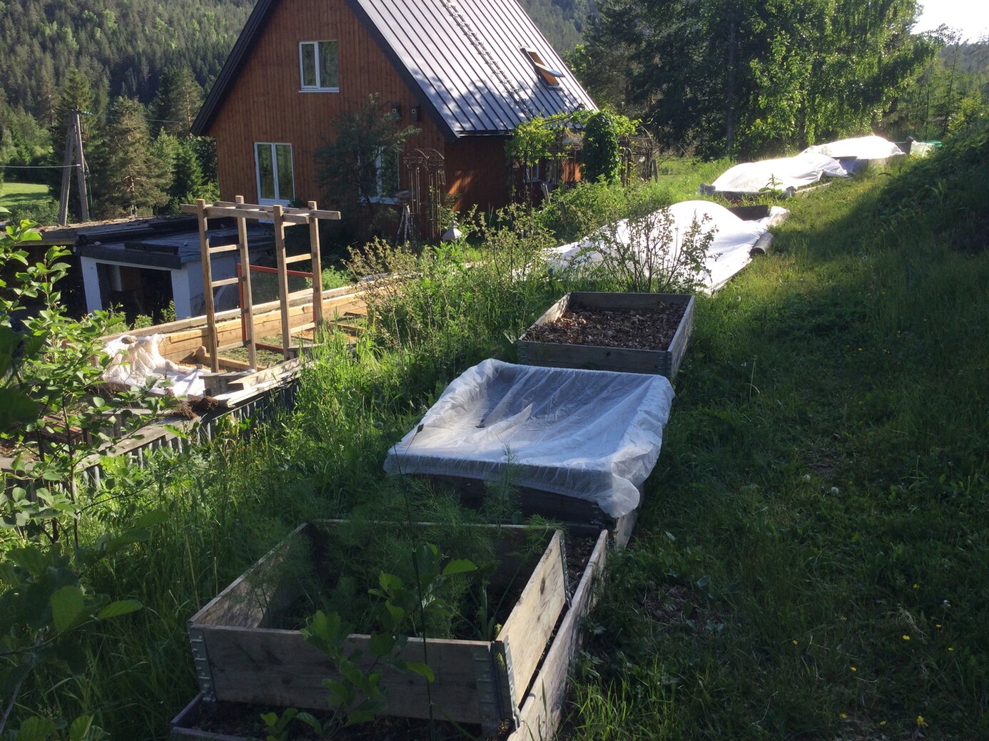 Es ist schon wieder Wochen her seitdem ich einen kleinen Update verschickt habe. Die Tage sind jetzt am längsten und wir verbringen viel Zeit mit Gartenarbeid. Vielleicht erinnert so manche an den langen Blumenkasten. Leider sind wir mit der Bepflanzung noch nicht weiter gekommen. Der Frühling hat lange auf sich warten lassen und es ist nicht so lange her wo wir nachts noch Minusgraden hatten. Nach zwei Woche Frühling brach dann der Sommer an. In den letzten Tagen 27˚. Dann ist es schwierig hinterher zu kommen mit der Gartenarbeid.