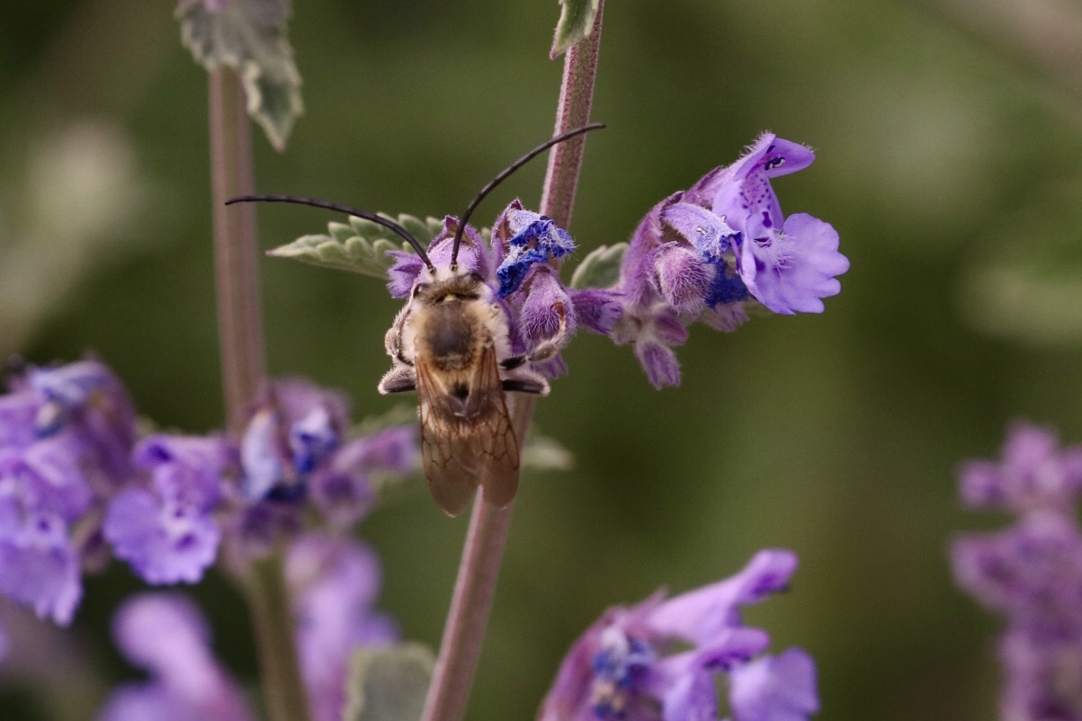 Heute im Hotspot. Eucera longicornis. Merkwürdig, dass ich da keinen deutschen Namen gefunden habe, aber übersetzt aus dem norwegischen müsste die Sinnenbiene heissen.