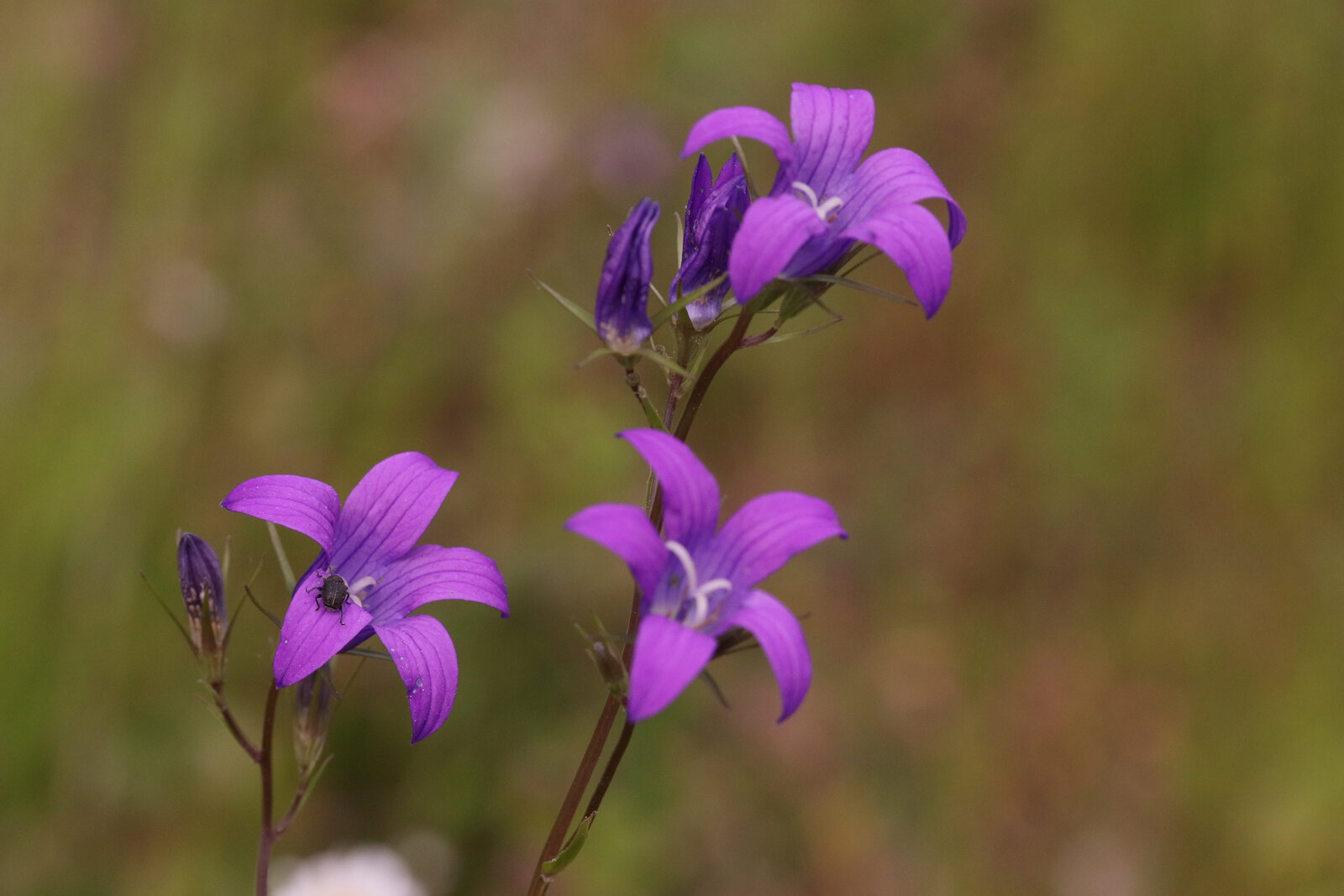Ich weiss nicht, wie es in Deutschland aussieht, aber hier fangen wir an die Trockenheit zu spüren. Heute waren es 32˚. Die Pechnelke, eine der Hauptarten auf der Wiese ist mehr oder weniger vertrocknet. Aber die Wiesen-Glockenblume macht es gut.