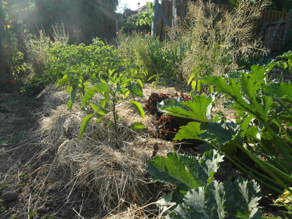 Paprika im Abendlicht Zuccini hat schon angesetzt!!