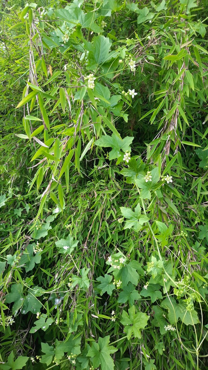 Die Zaunrübe gibt dem Bambus meiner Frau einen ökologischen Nutzen