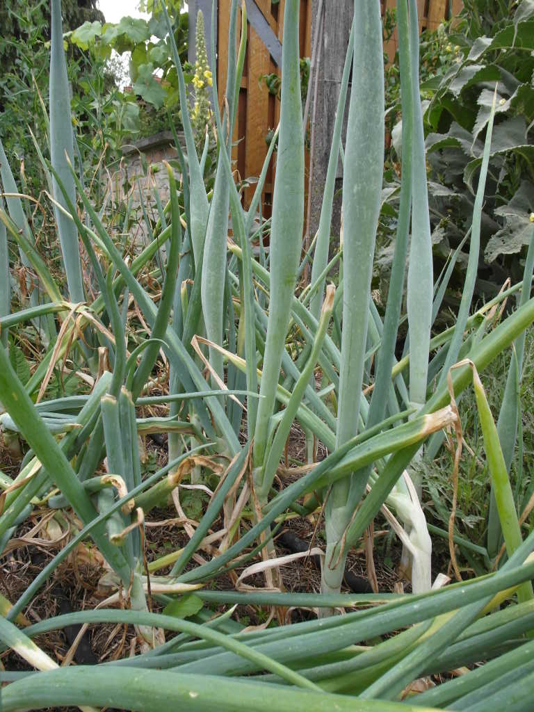 Ich lasse diejenigen Zwiebeln dann einfach blühen, denn sie haben eh schon ihre ganze Kraft in die Stängel und Blüte geschoben, dass die Zwiebel an sich nicht mehr viel hergibt. Am besten erntest du sie jetzt direkt, wenn du die Stängel ausgebrochen hast, denn die Zwiebel erholt sich davon meist nur sehr langsam.
