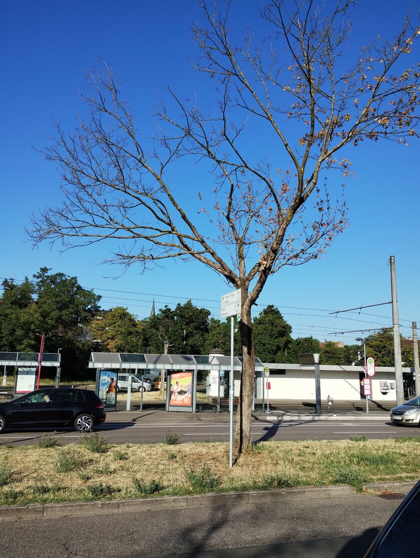 In der Karlsruher Gegend gibt es soo viele Bäume mit Trockenschaden.