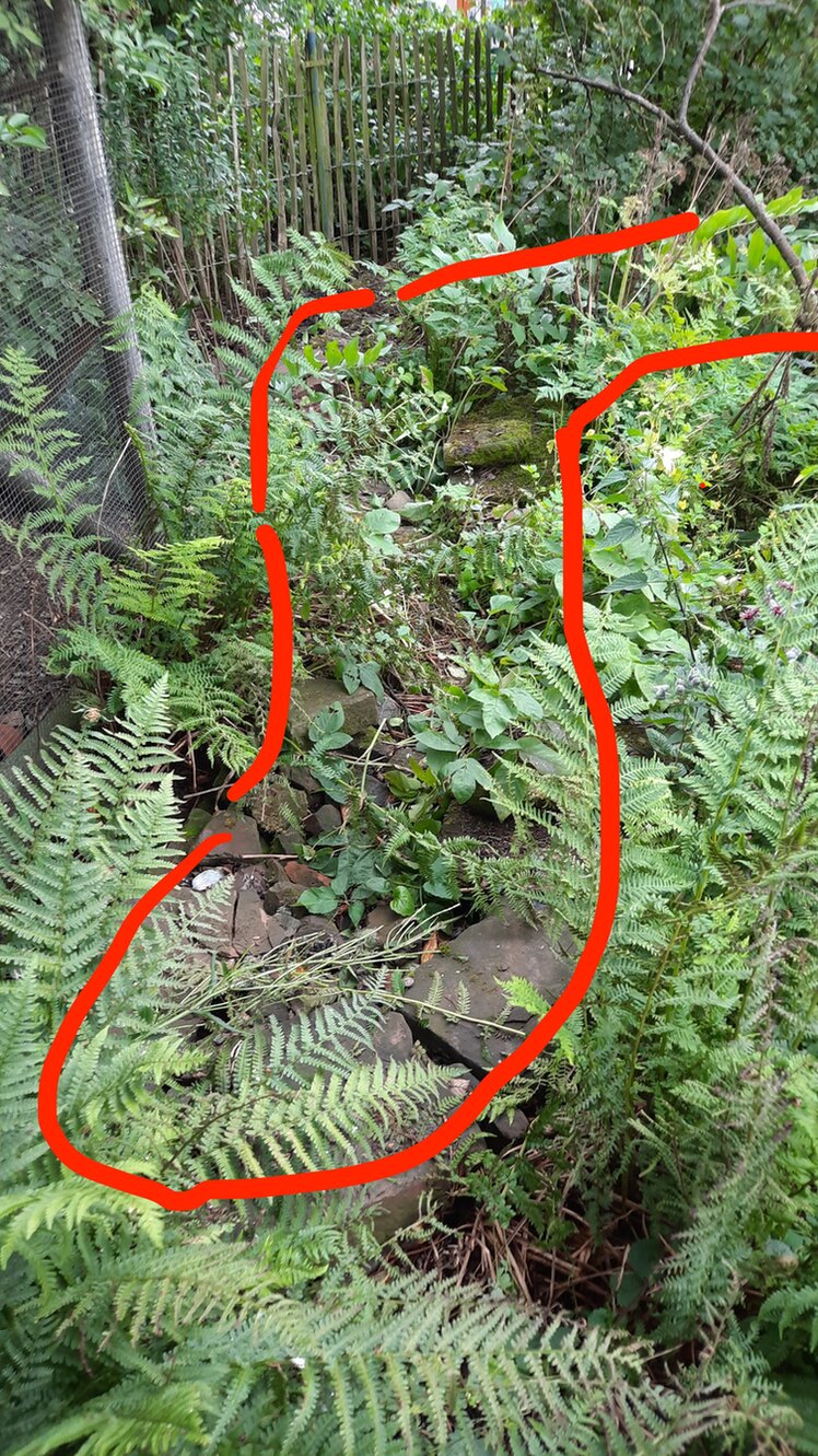 durch Gehölzschnittaktivitäten unserer Nachbarn ist auf unserer Seite plötzlich eine Lücke freigeworden, in der ein mit Natursteinen begrenztes, ca. 20cm hohes, 55cm breites, "Niedrig-Hochbeet" unserer Vorbesitzer freigeworden ist, das mit Porzellan- und Steingutbruch gefüllt ist (auch Vorbesitzer) (Wtf?), auf der inzwischen eine Erdauflage ist.