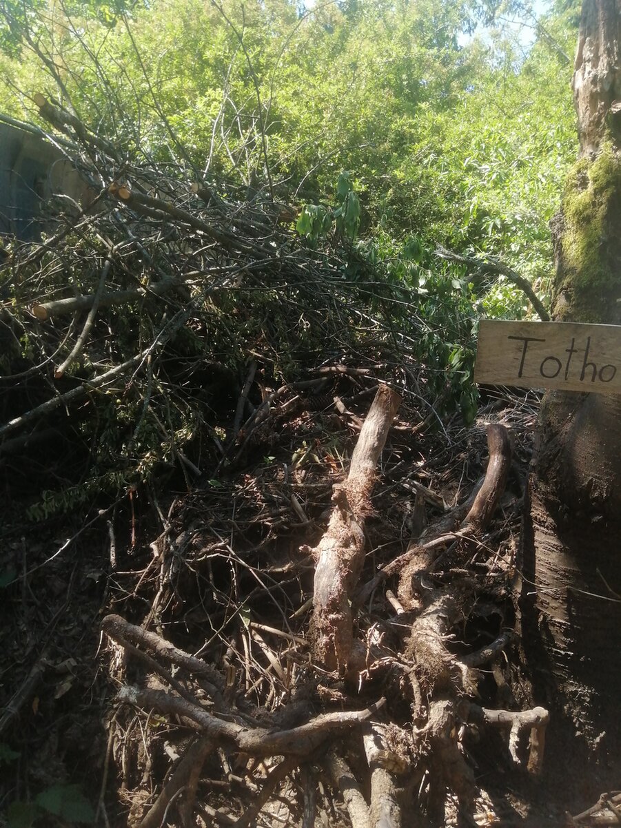 An Totholzelementen haben wir bisher eine kleine Benjeshecke welche bereits vom wilden Wein eingenommen wurde, einen großen Totholzhaufen, einen Reisighaufen und weiteres Totholz als Abgrenzung oder einfach als schönes Element im Garten. Als Steinelement sowie als Sandarium ist ein Sandhochbeet mit Trockenmauer diese Jahr dazu gekommen.