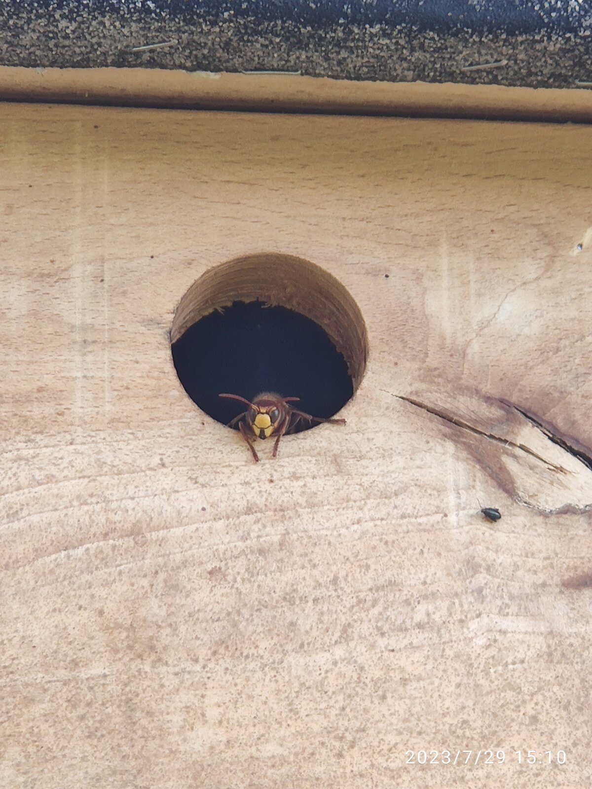 Oder hier haben sich Hornissen im Spatzenhotel eingefunden: