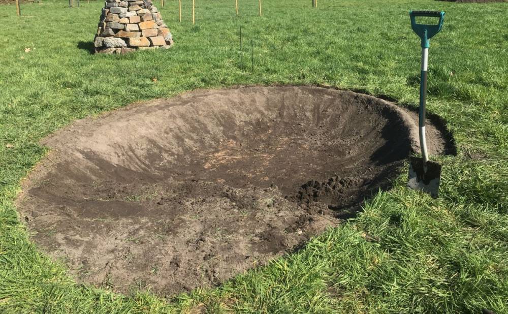 Anders sieht es aus, wenn man eine kleine Wasserstelle anlegt, die trockenfallen darf. Da reichen die eigenen Lehmbaukünste dann ja auf jeden Fall aus.