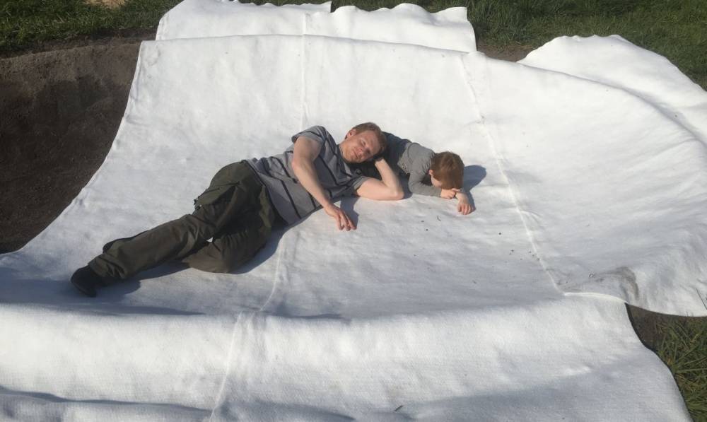 Das Schutzvlies schützt die Folie vor Steinen und Wurzeln von unten.