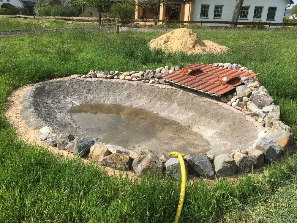 n der Mitte sollte die Tiefe etwa 45cm nicht überschreiten, damit nach Betonierung auch wirklich ein FLACHwasserteich entsteht.